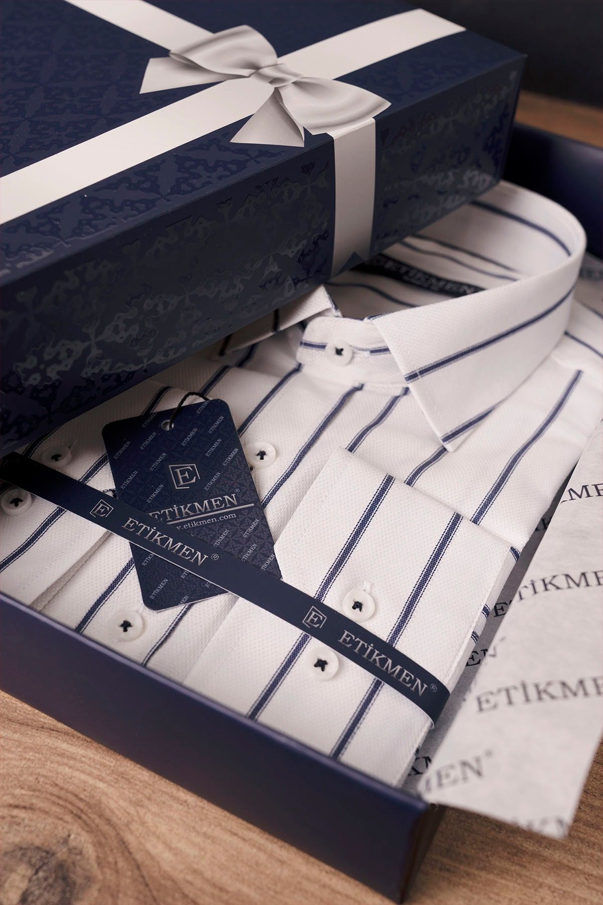 پیراهن مردانه اسلیم فیت راه راه سفید Etikmen