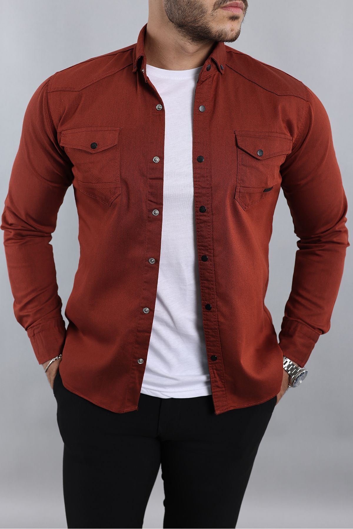 پیراهن زمستانی مردانه راحت و دارای دو جیب، برشدار tudors