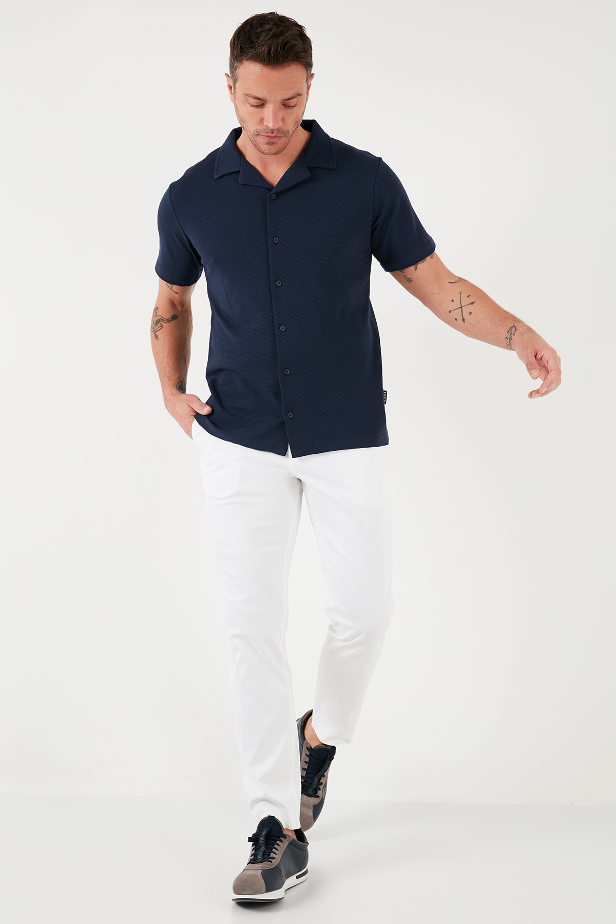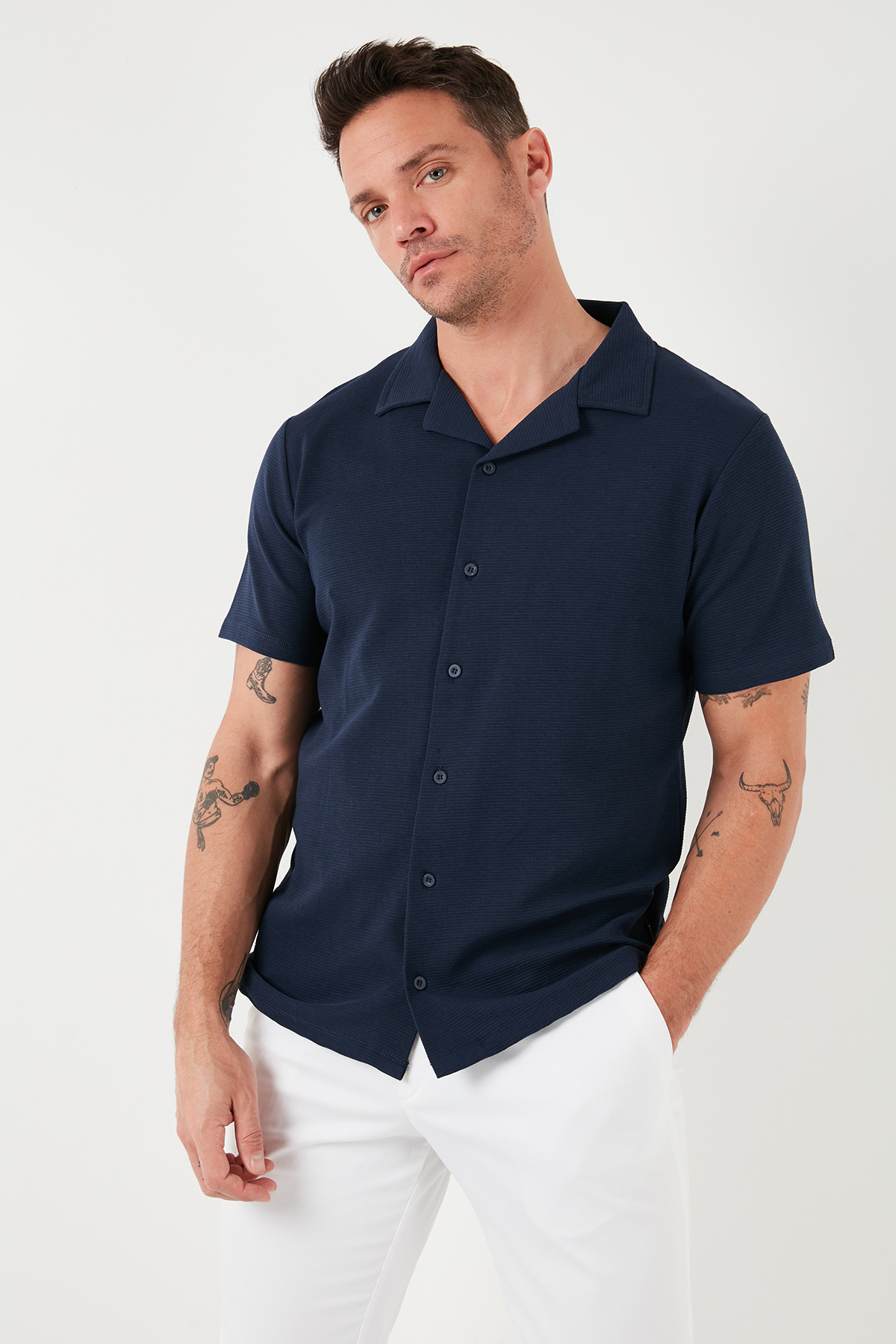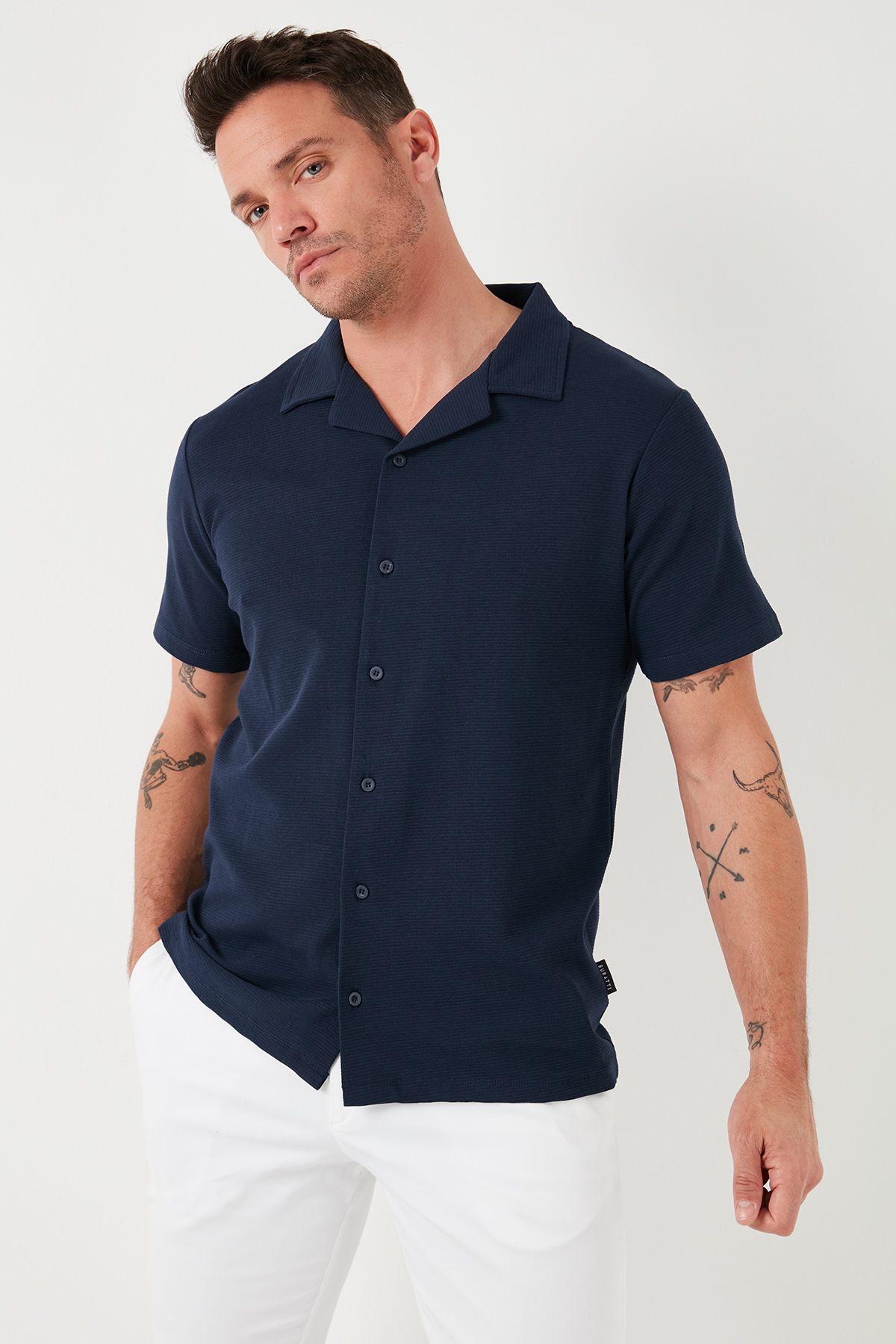 پیراهن آستین کوتاه نخی پیراهن مردانه سورمه ای Buratti