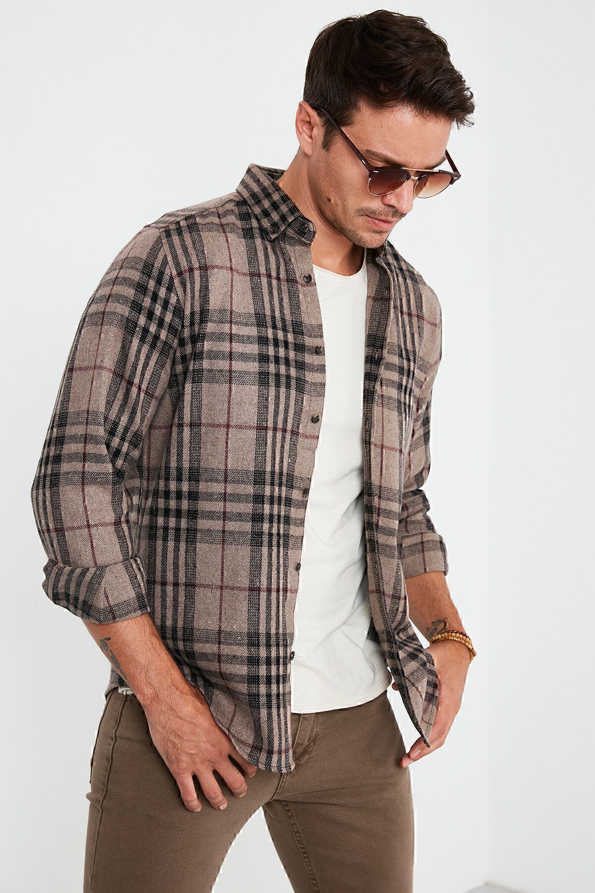 پیراهن مردانه شطرنجی آستین بلند زمستانی پوست پیازی Buratti