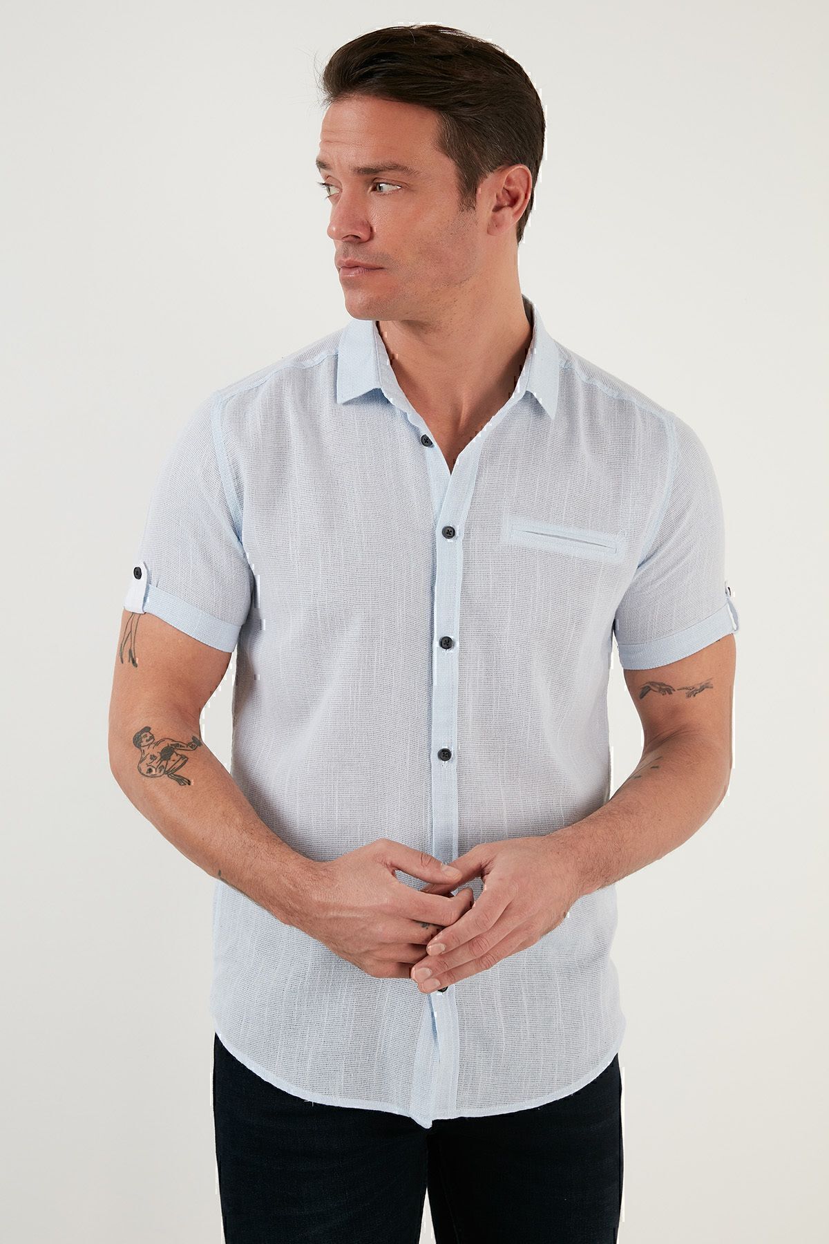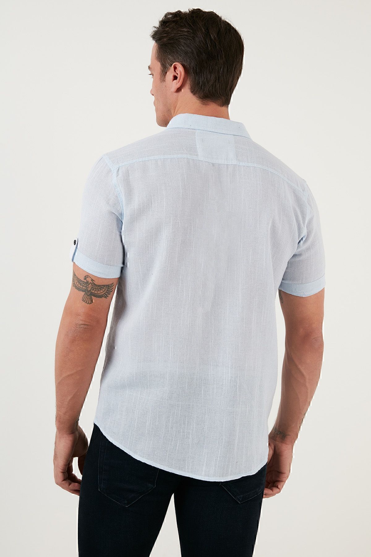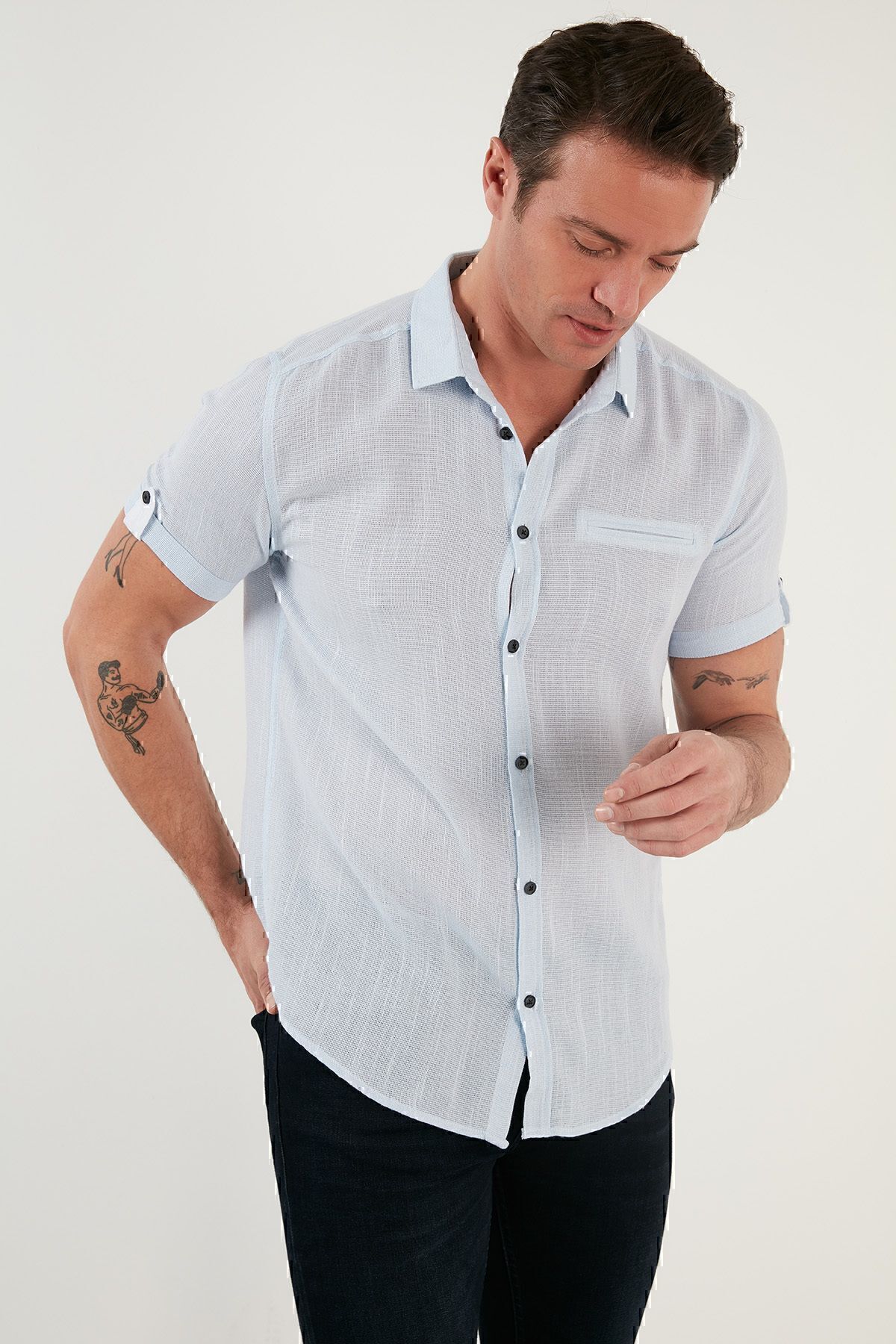 پیراهن آستین کوتاه نخی پیراهن مردانه سورمه ای Buratti