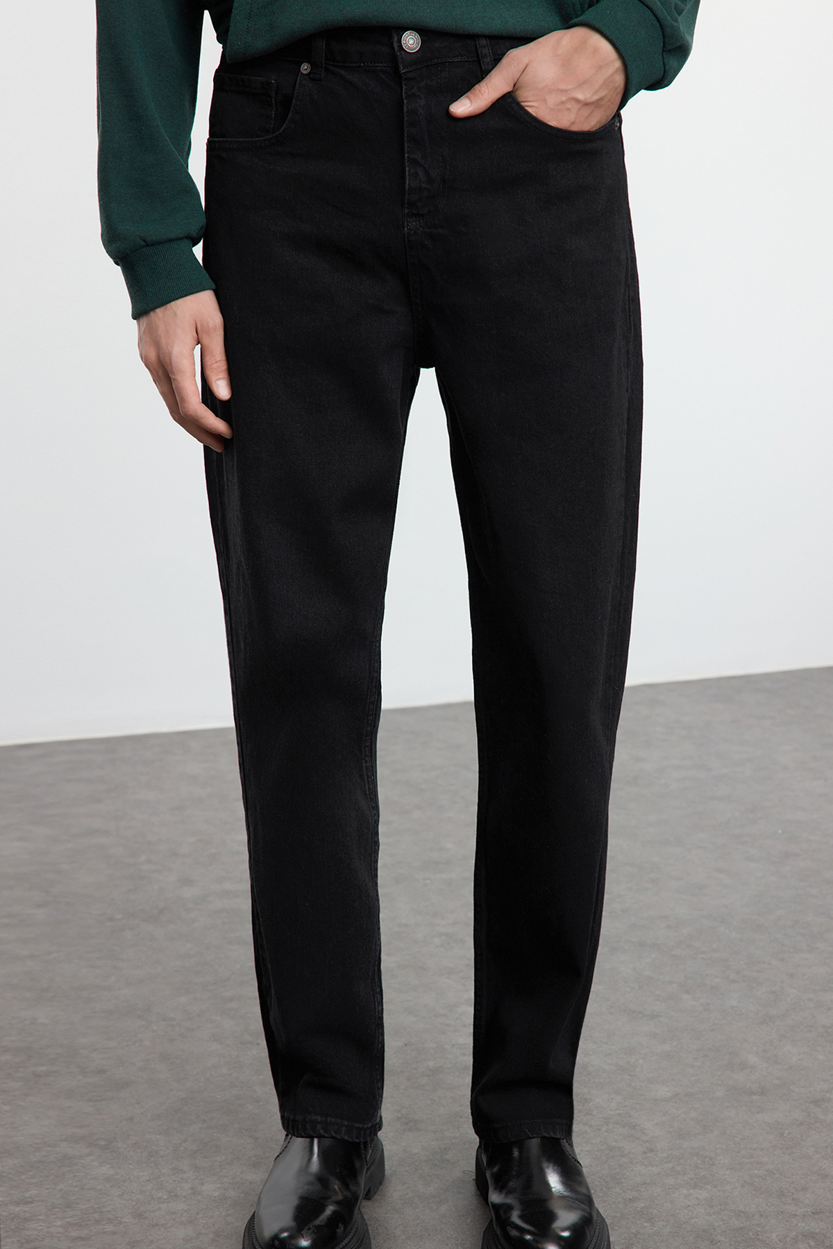 شلوار جین مردانه گشاد مشکی دهه 90 باگی فیت TRENDYOL MAN