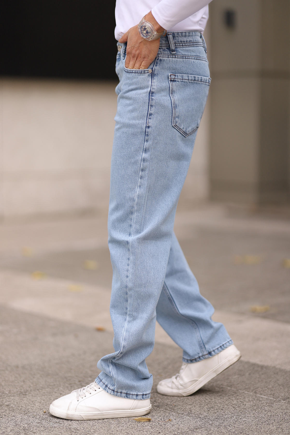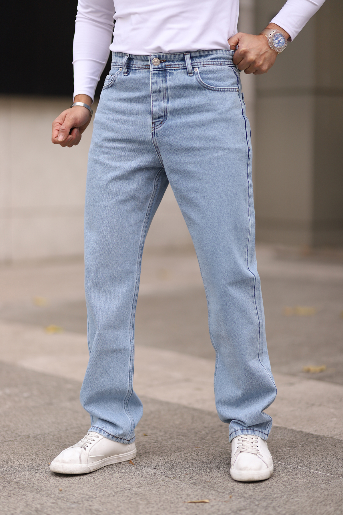 شلوار جین مردانه گشاد 100% نخی آبی روشن TRENDYOL MAN