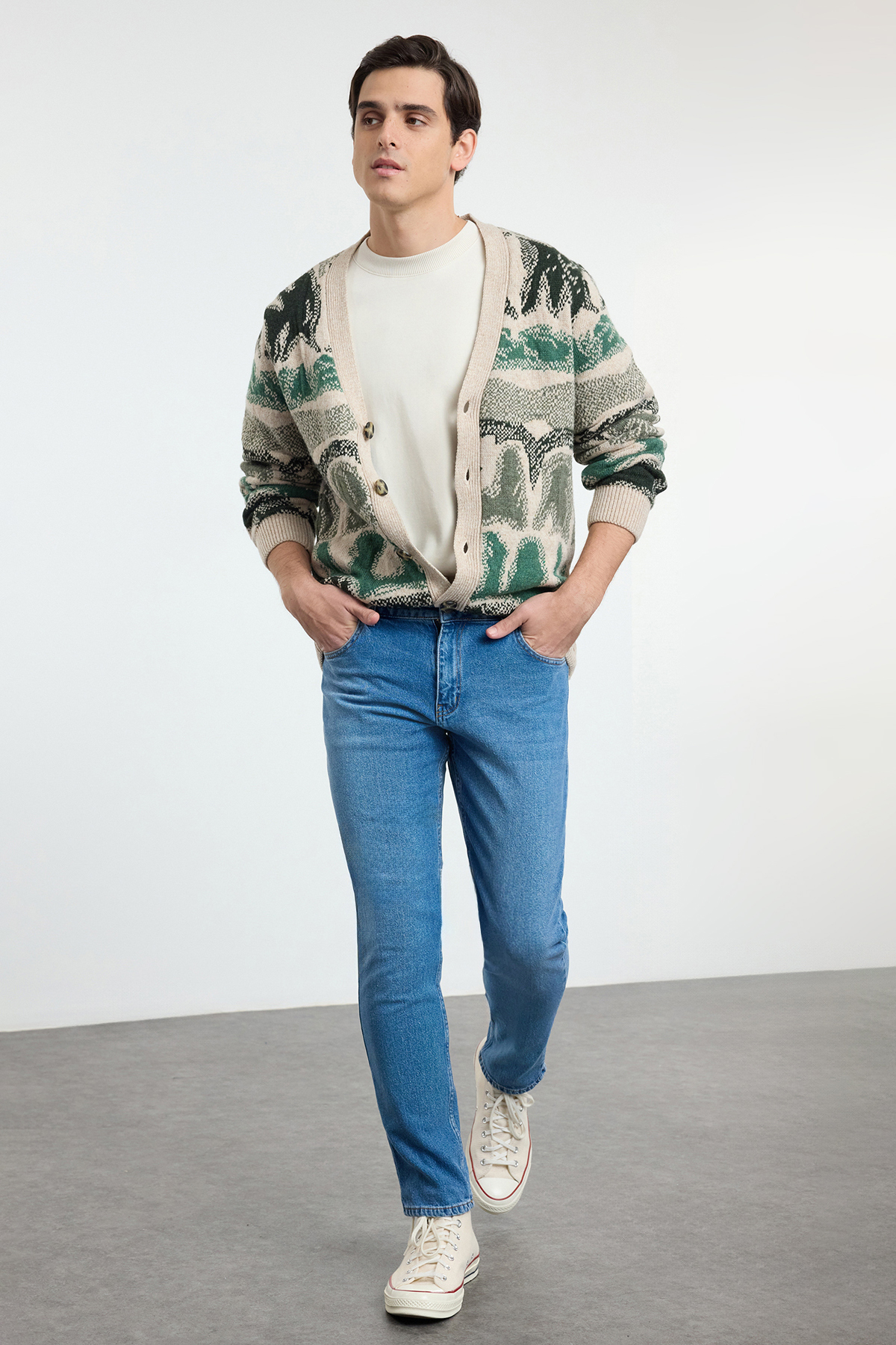 شلوار جین مردانه پارچه کش دار آبی متوسط TRENDYOL MAN