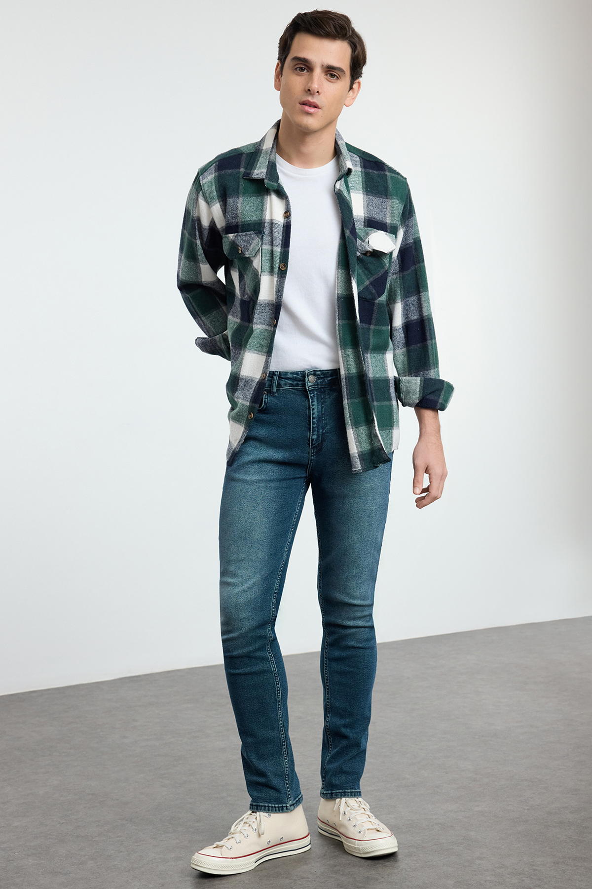 شلوار جین مردانه منظم با پارچه انعطاف پذیر نیلی TRENDYOL MAN