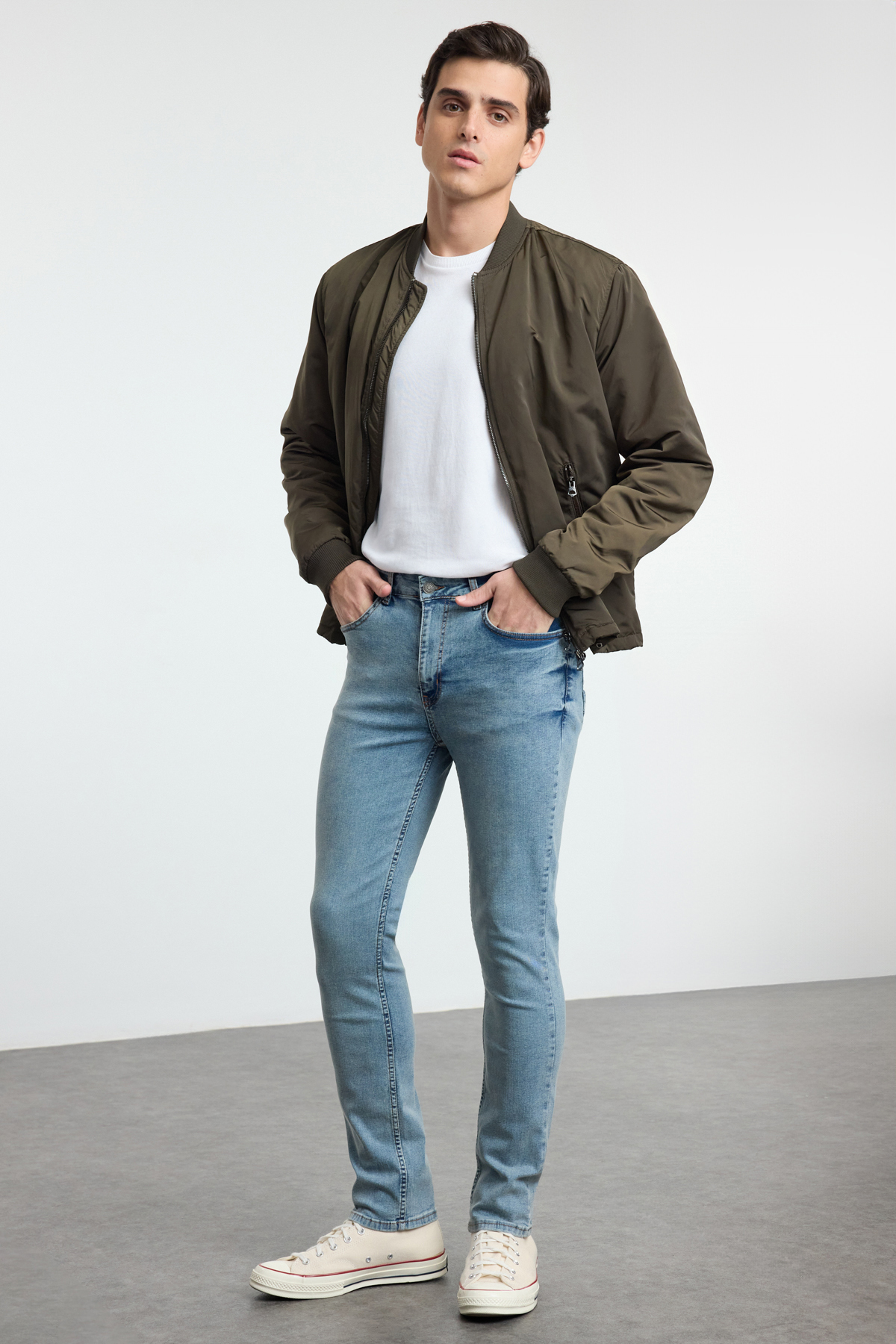 شلوار جین مردانه پارچه منعطف اسلیم فیت آبی کمرنگ TRENDYOL MAN