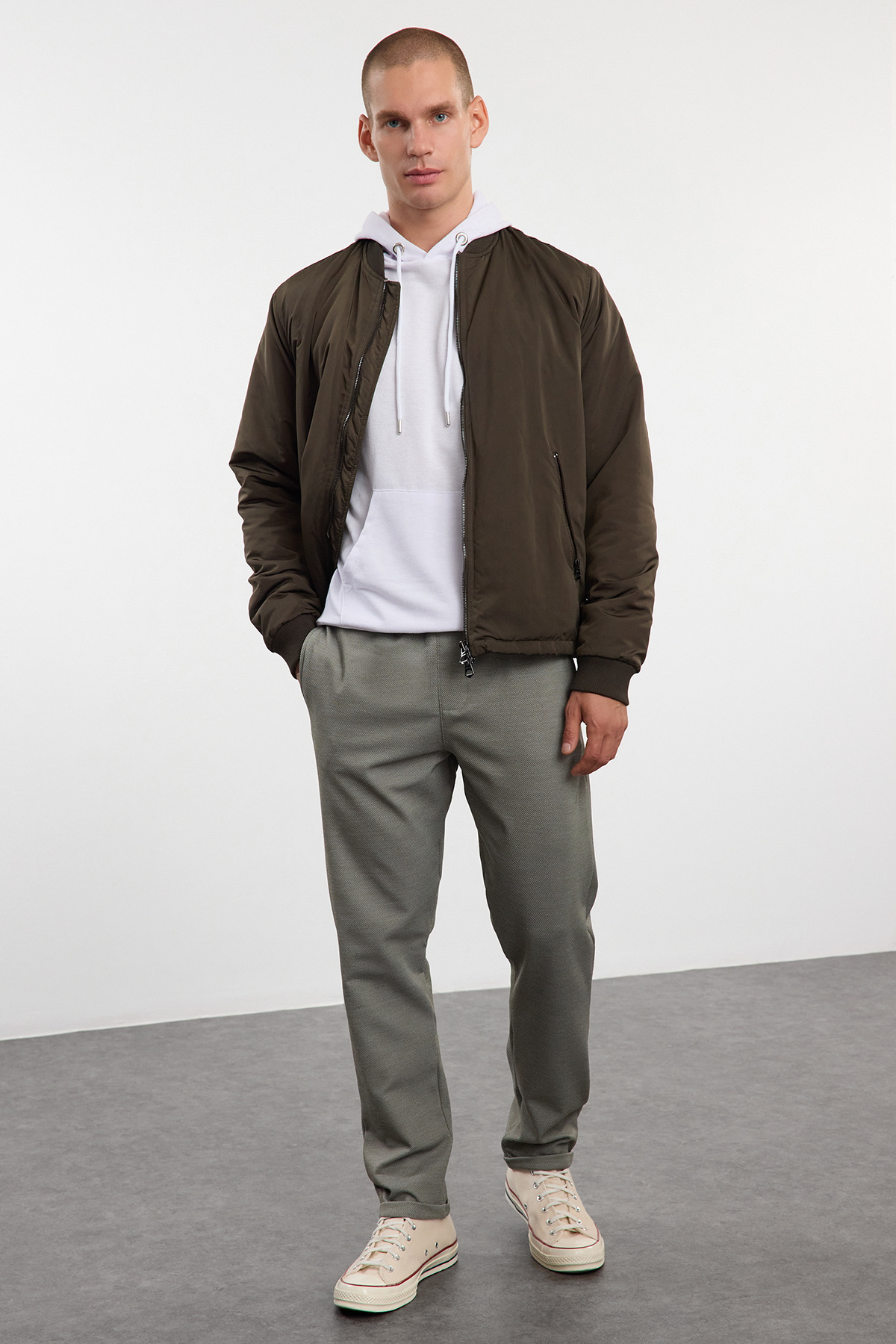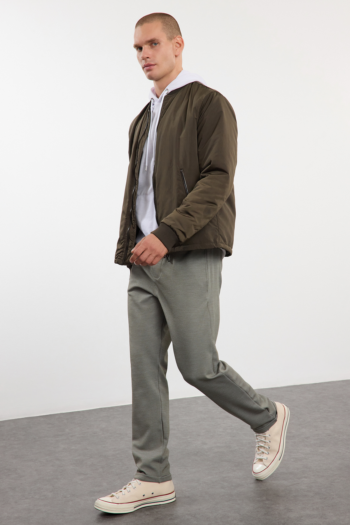 شلوار مردانه پارچهای کمر کشی منعطف ریگولار فیت طوسی TRENDYOL MAN