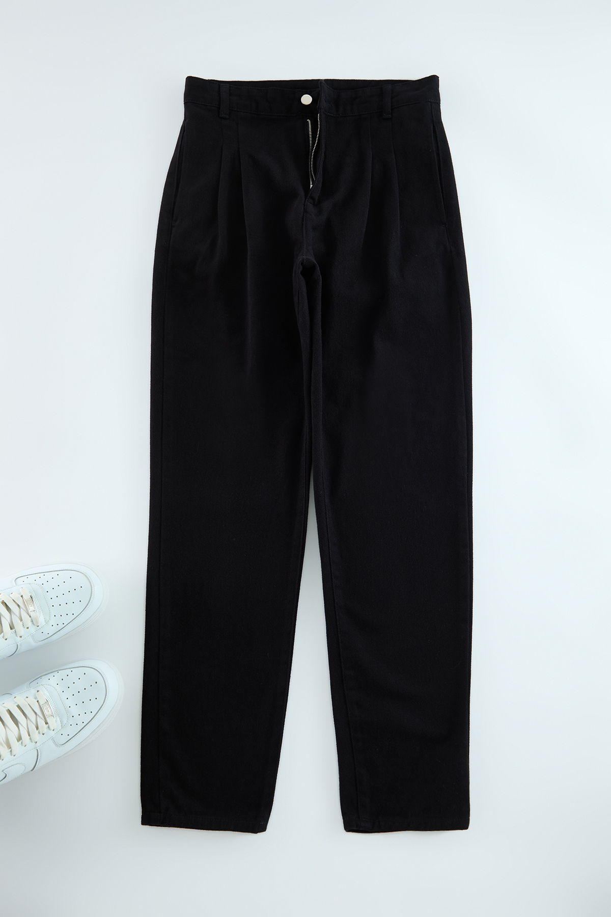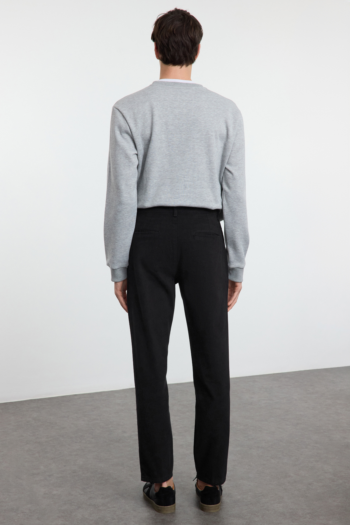 شلوار مردانه گاباردین مدل بادکنکی دو چین دار 100% نخی مشکی TRENDYOL MAN