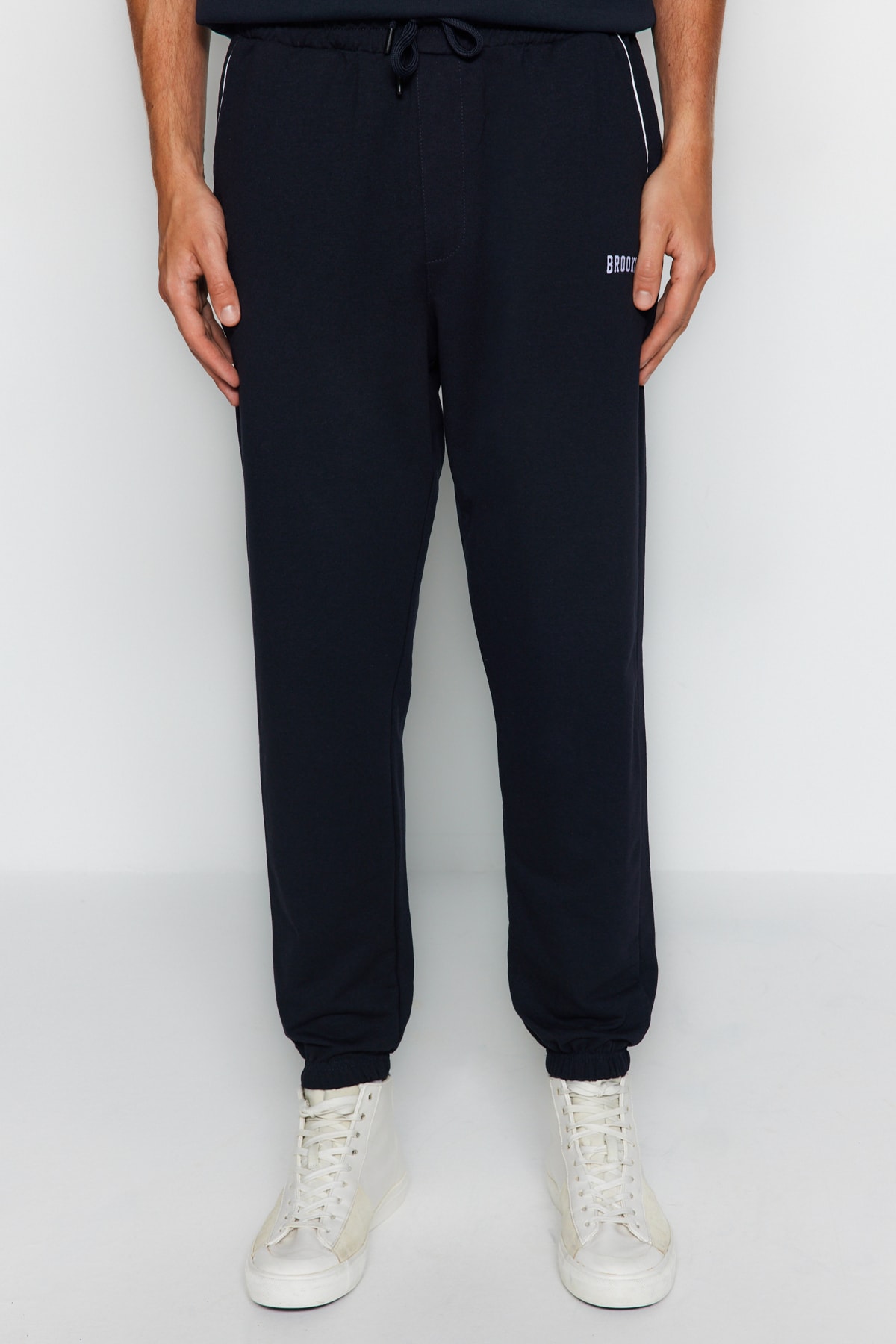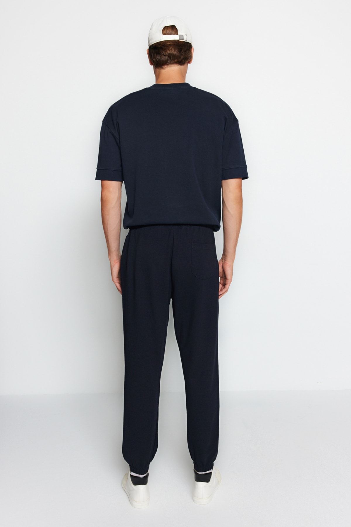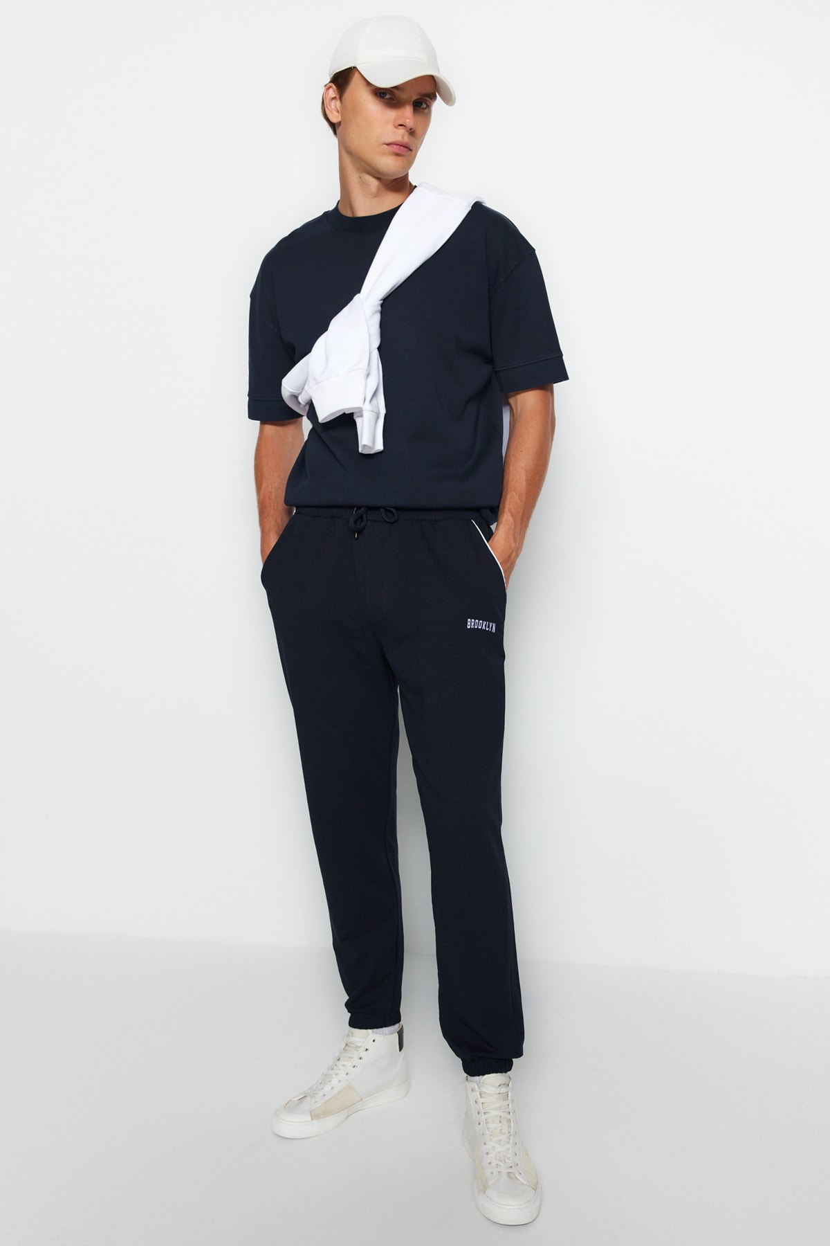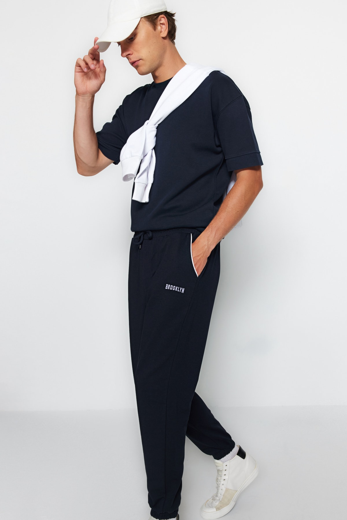 شلوار ورزشی مردانه کشسان طرحدار آبی سرمهای Trendyolmilla Man