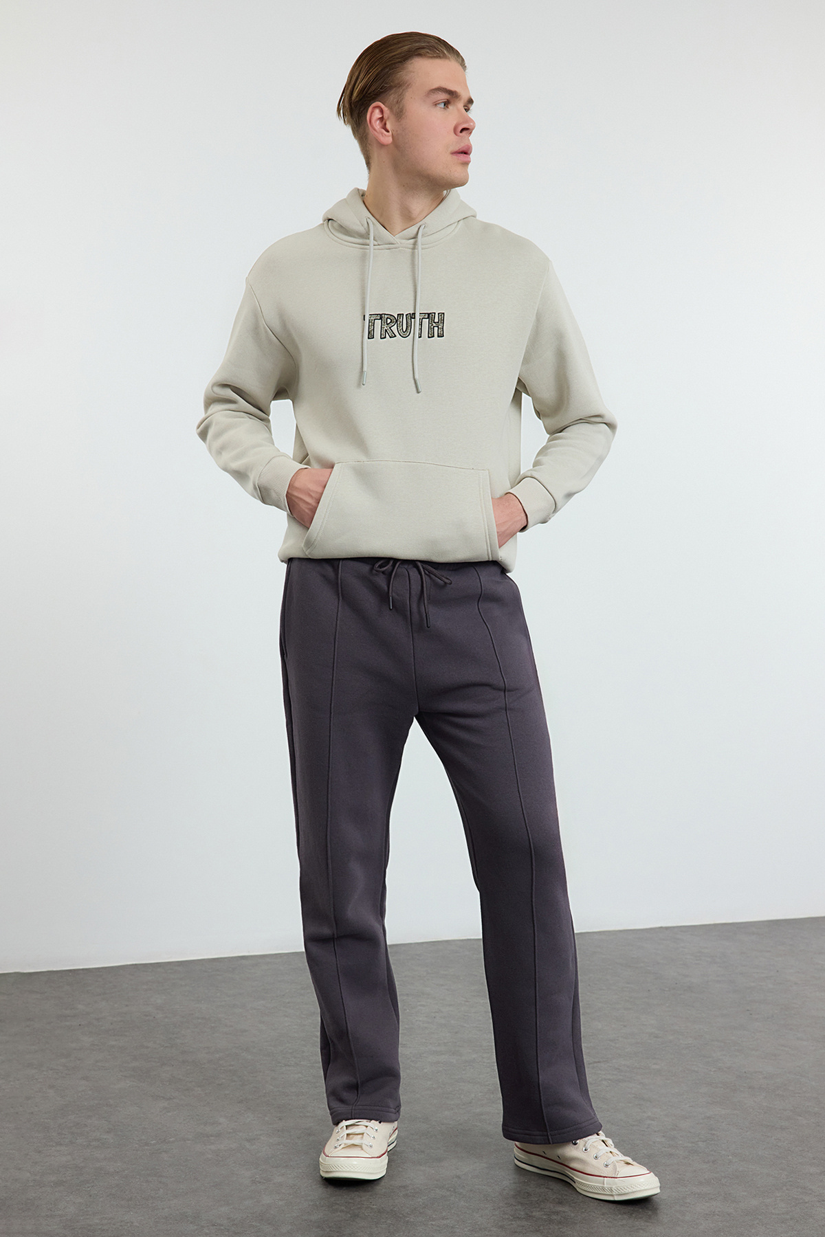 شلوار ورزشی مردانه راسته با جزئیات دوخت خاکستری Trendyolmilla Man