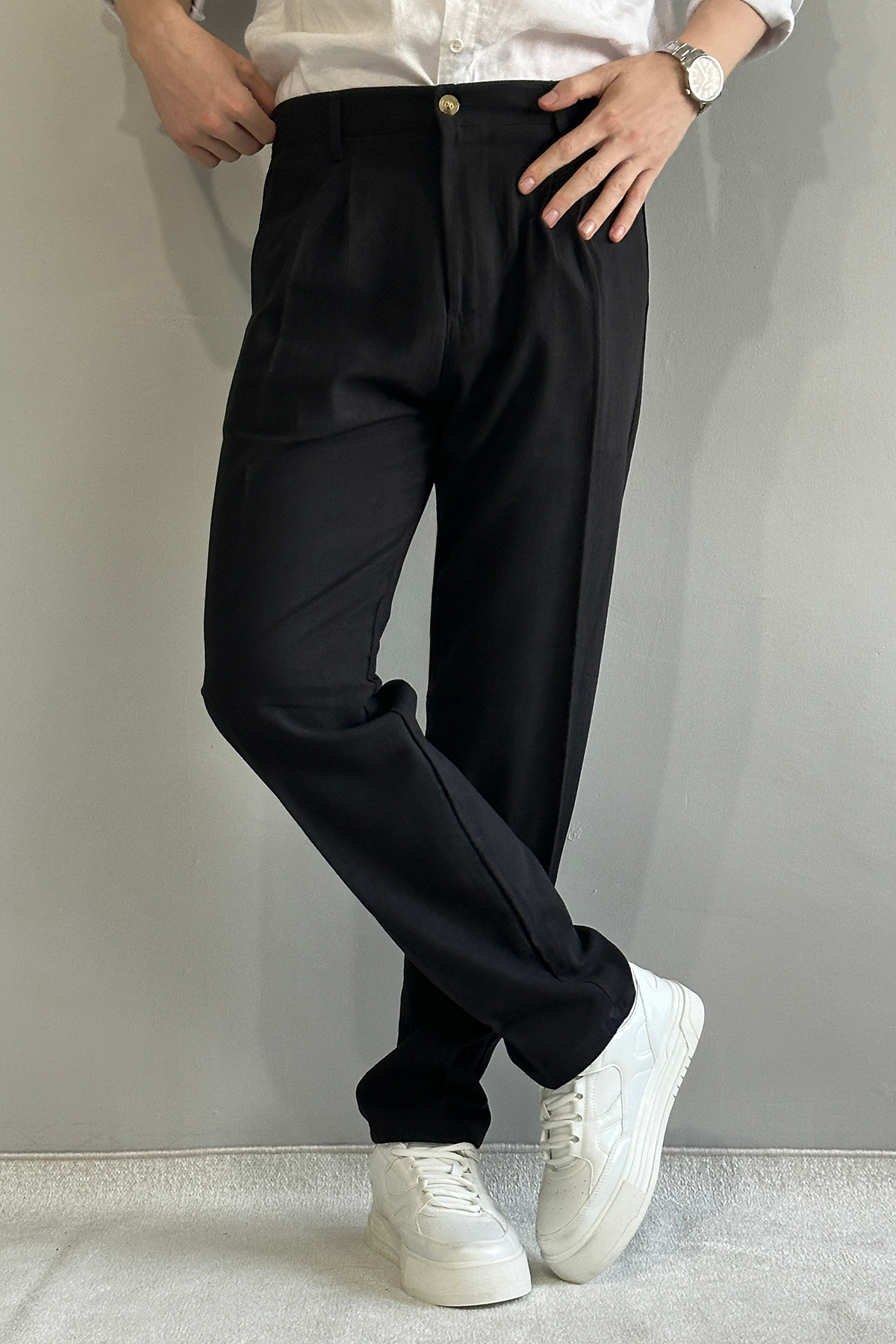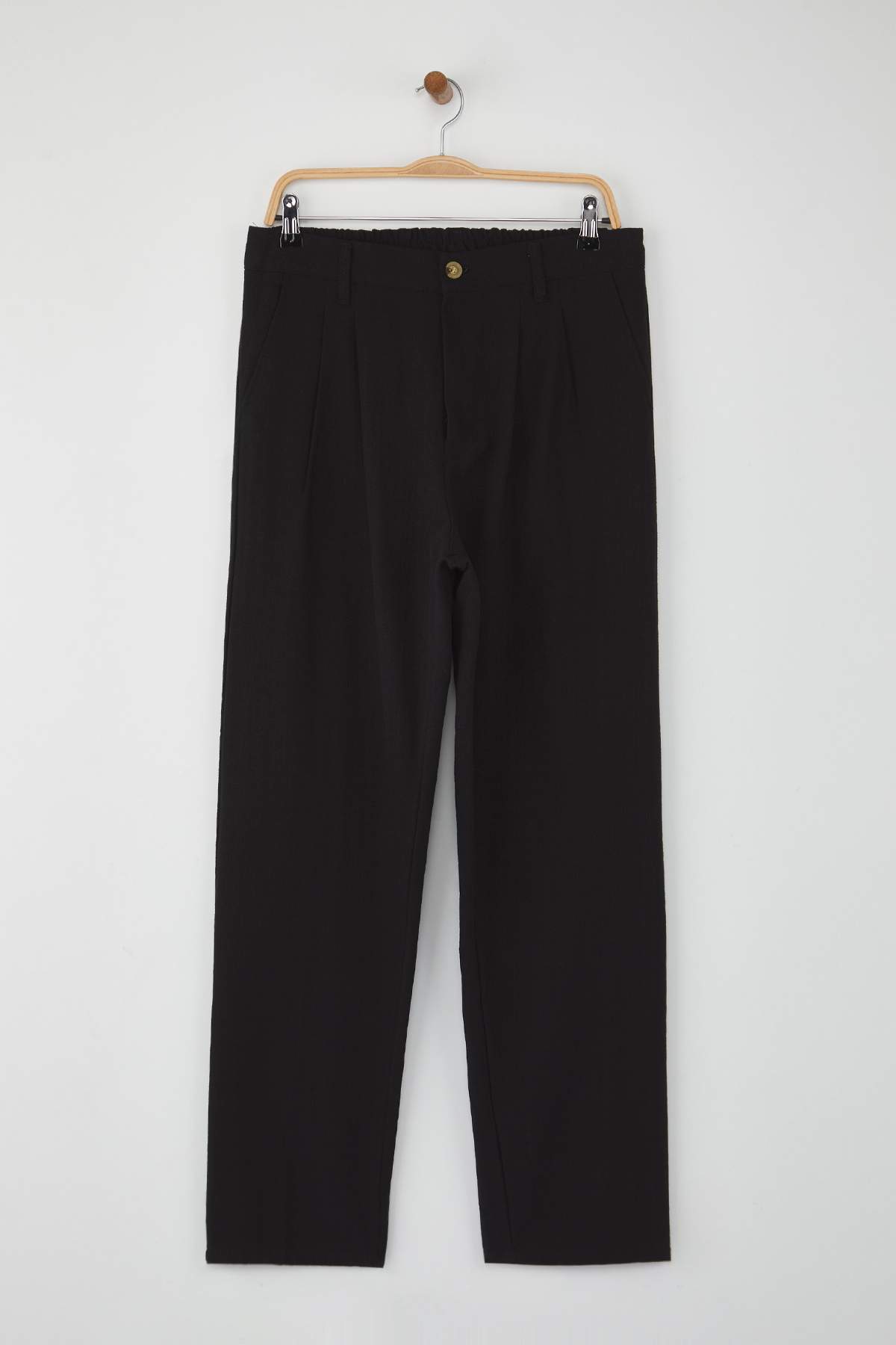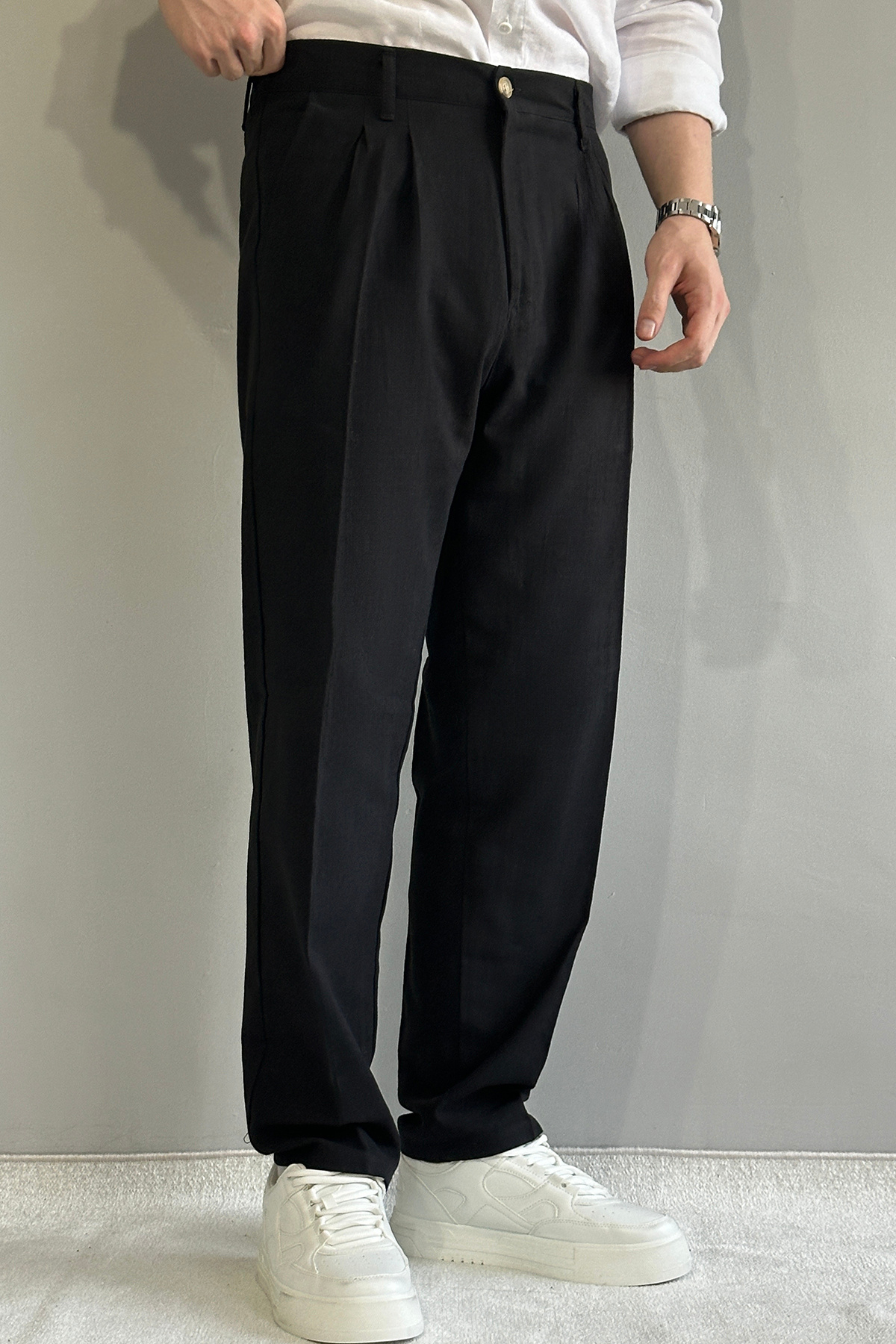 شلوار نخی مردانه راحت پلیسهدار مشکی کتان trendyolmilla