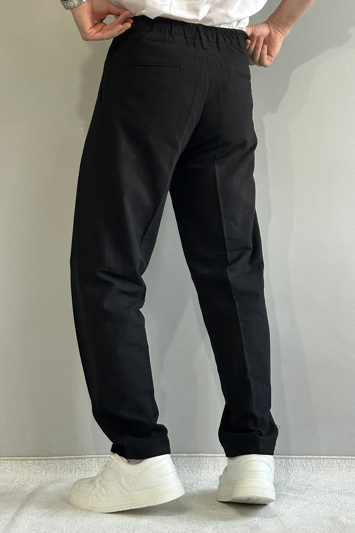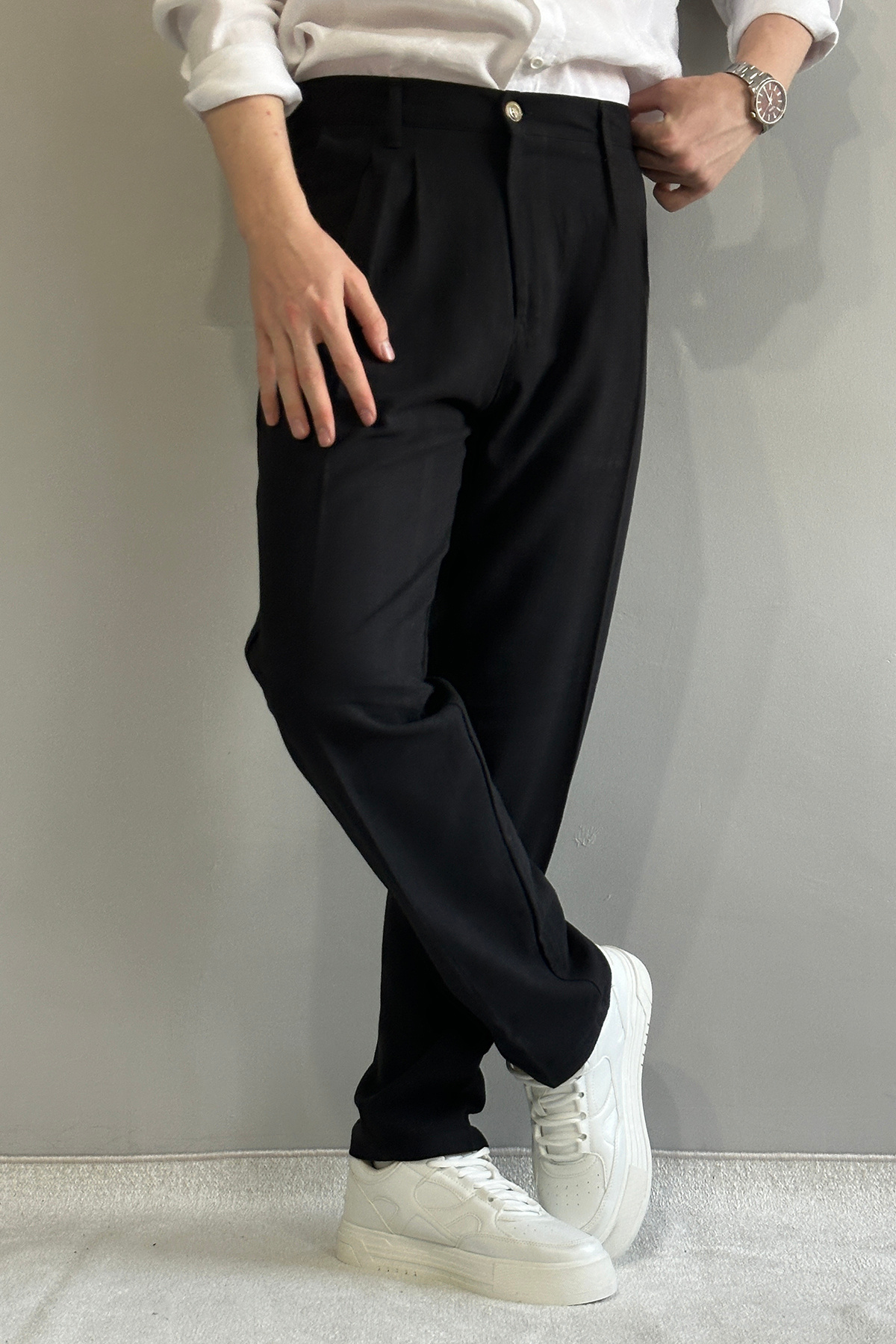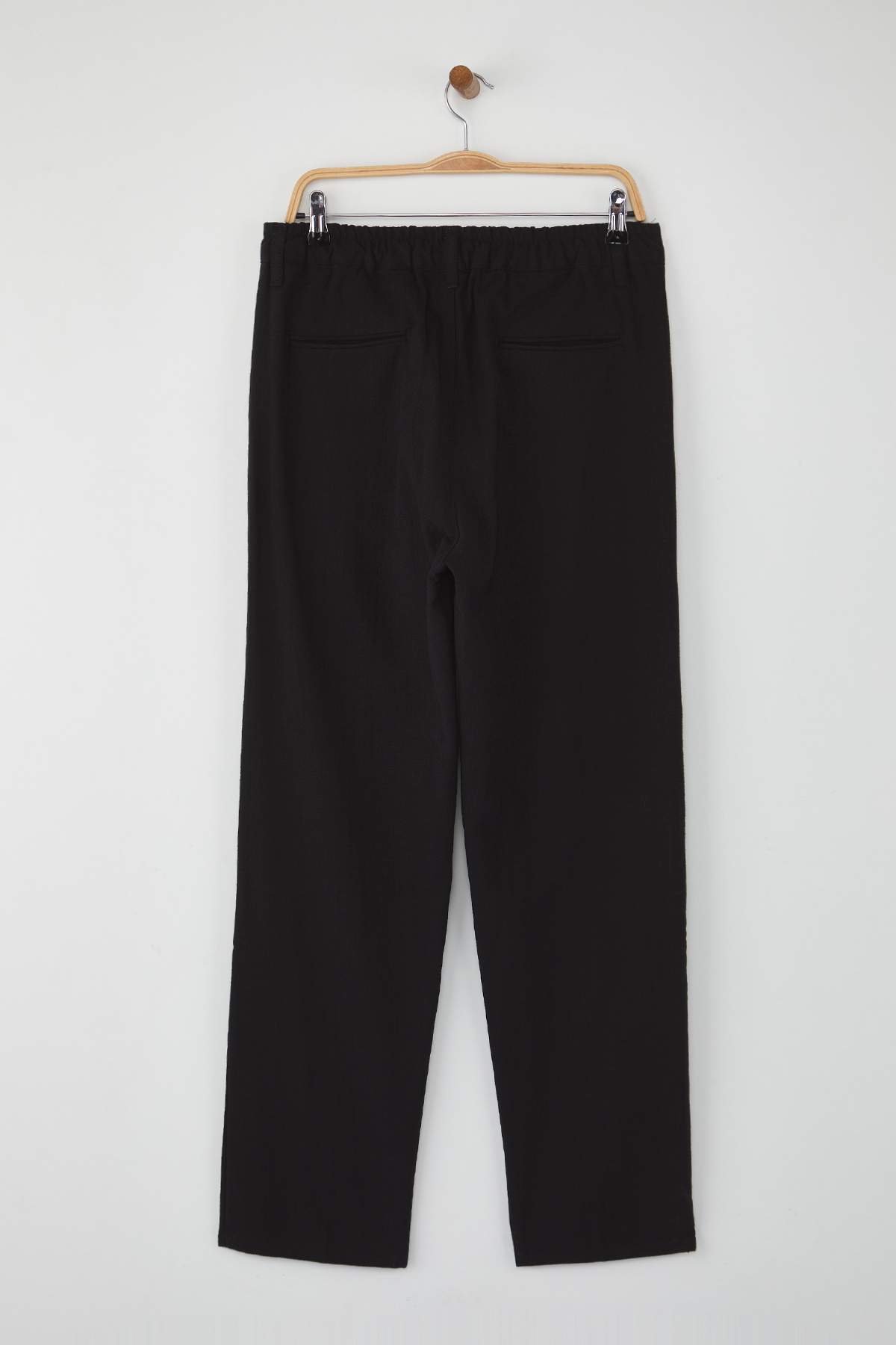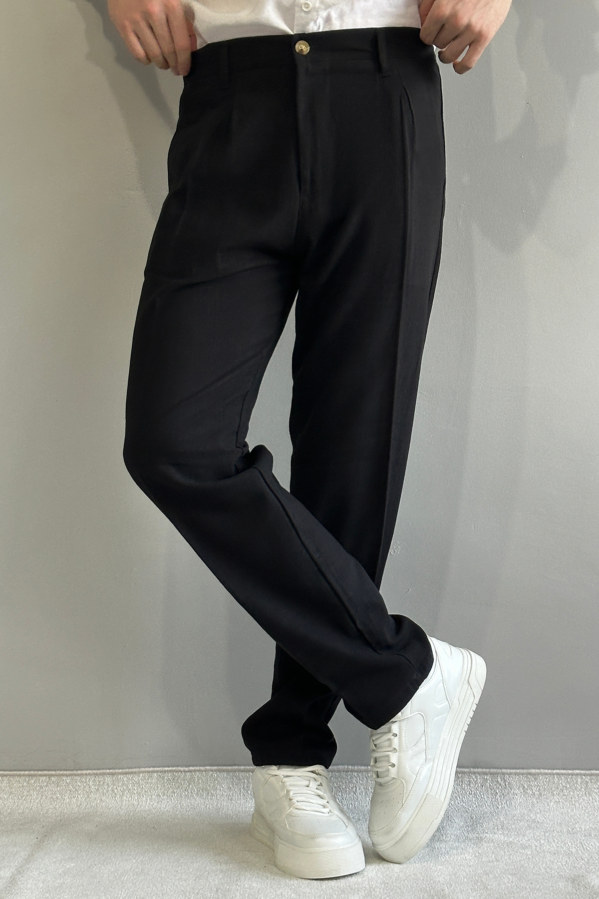 شلوار نخی مردانه راحت پلیسهدار مشکی کتان trendyolmilla