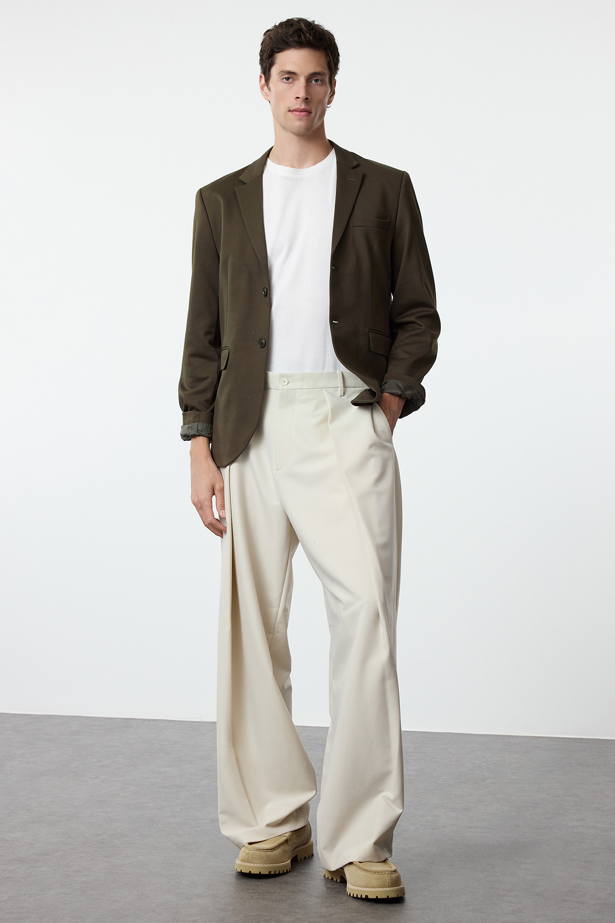 کت مردانه کتانی انعطاف پذیر اسلیم فیت خاکی TRENDYOL MAN