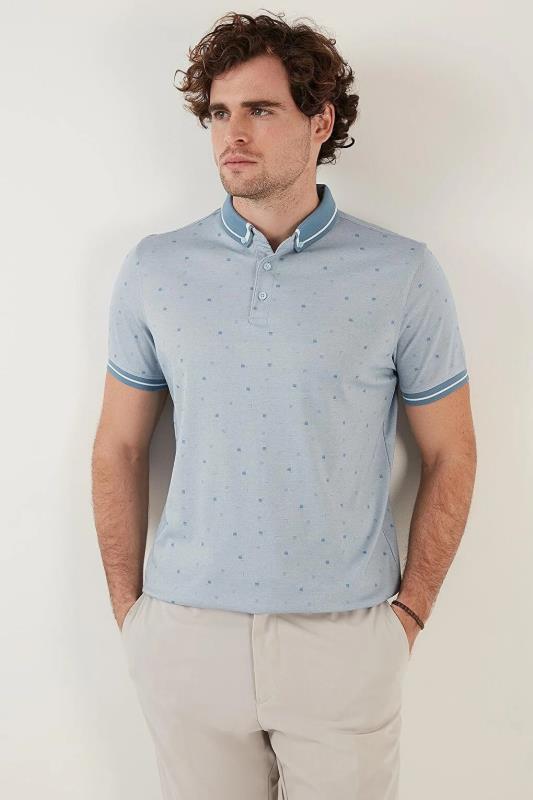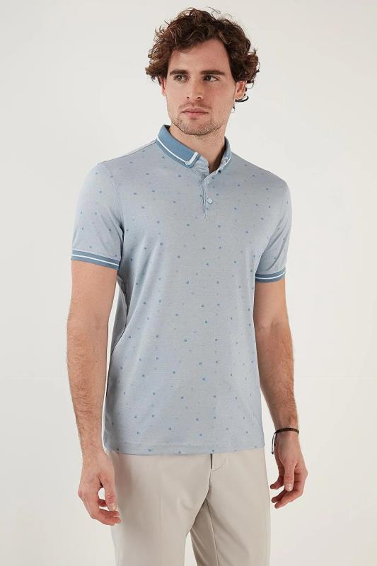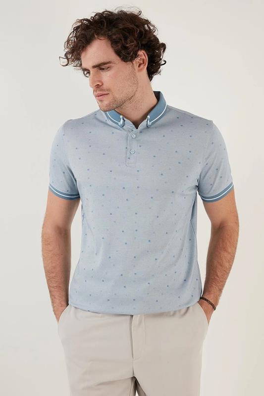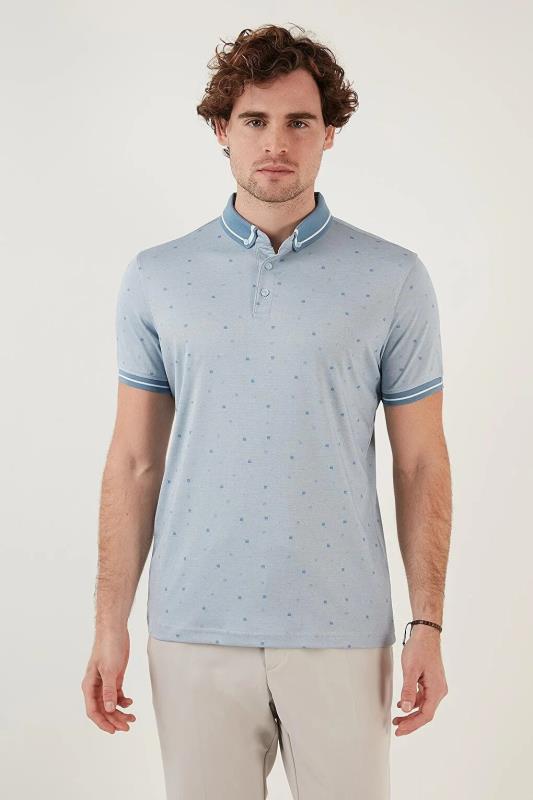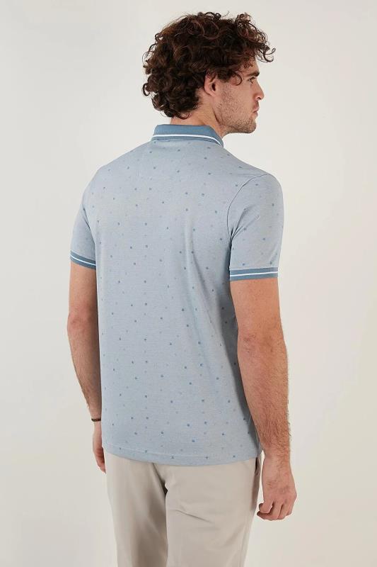 تی شرت مردانه یقه دار با طرح اسلیم فیت Buratti آبی