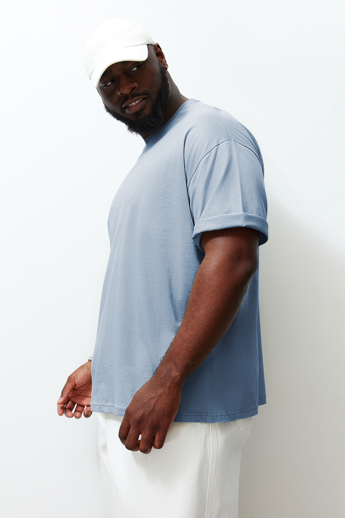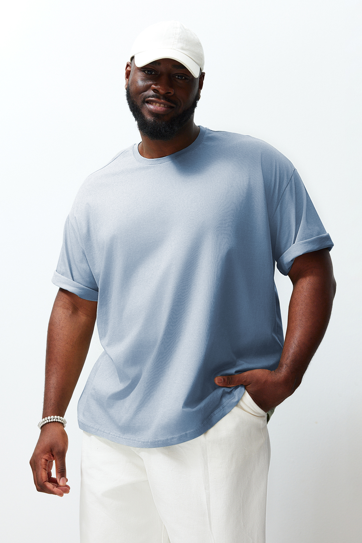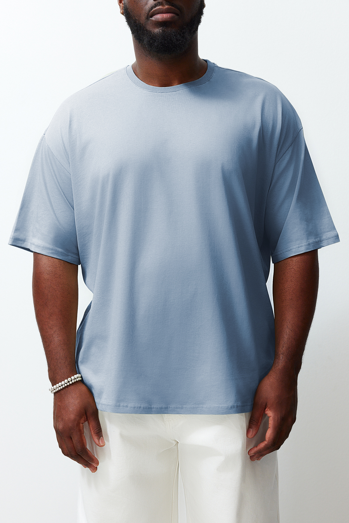 تیشرت مردانه 100% پنبه ای سایز بزرگ آبی روشن TRENDYOL MAN