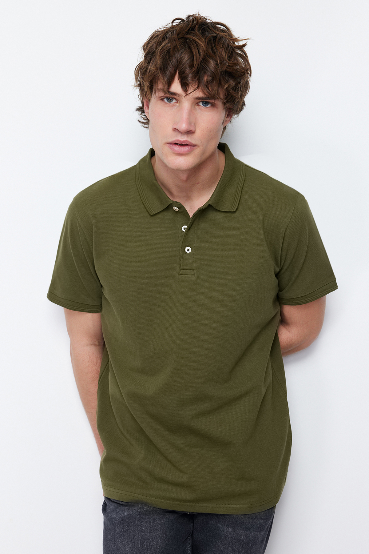 تیشرت مردانه یقهدار 100% پنبهای اسلیم دارچینی Trendyolmilla Man