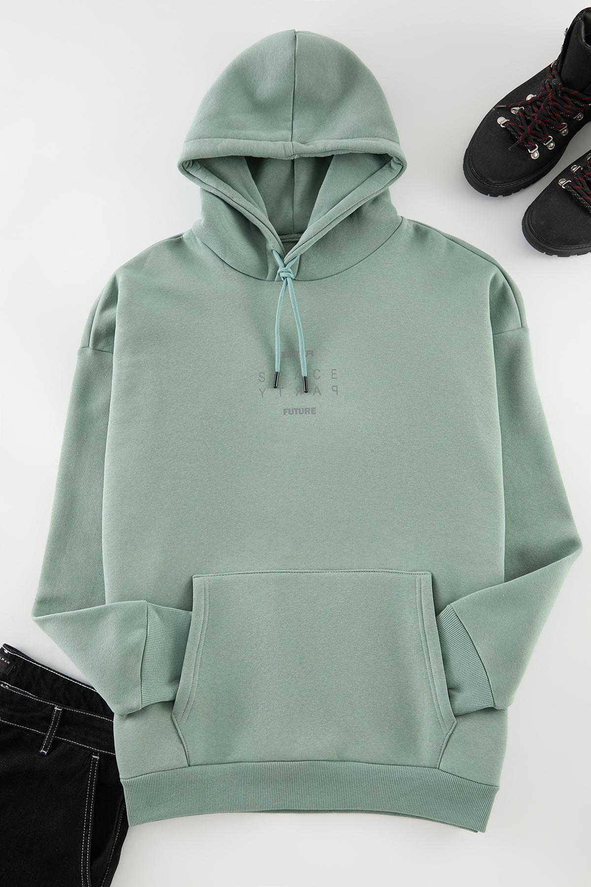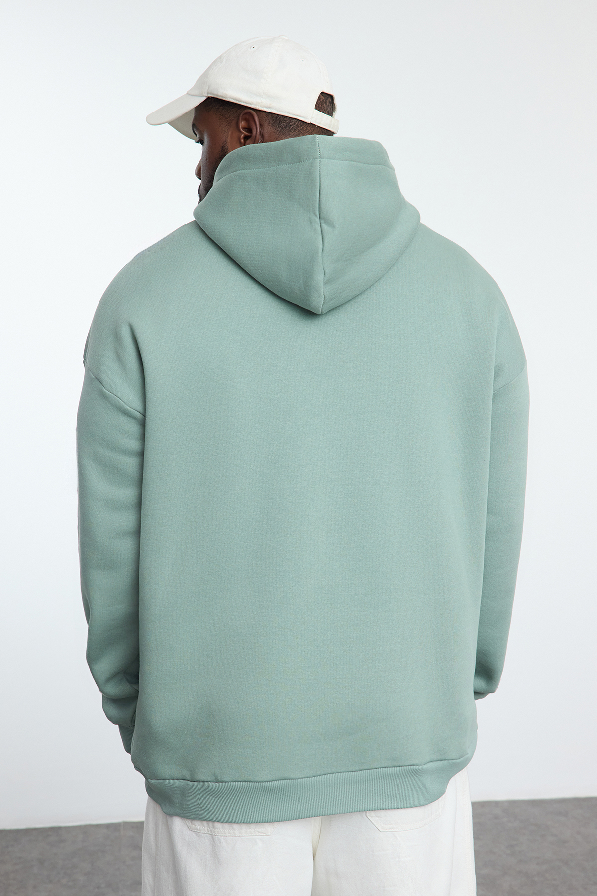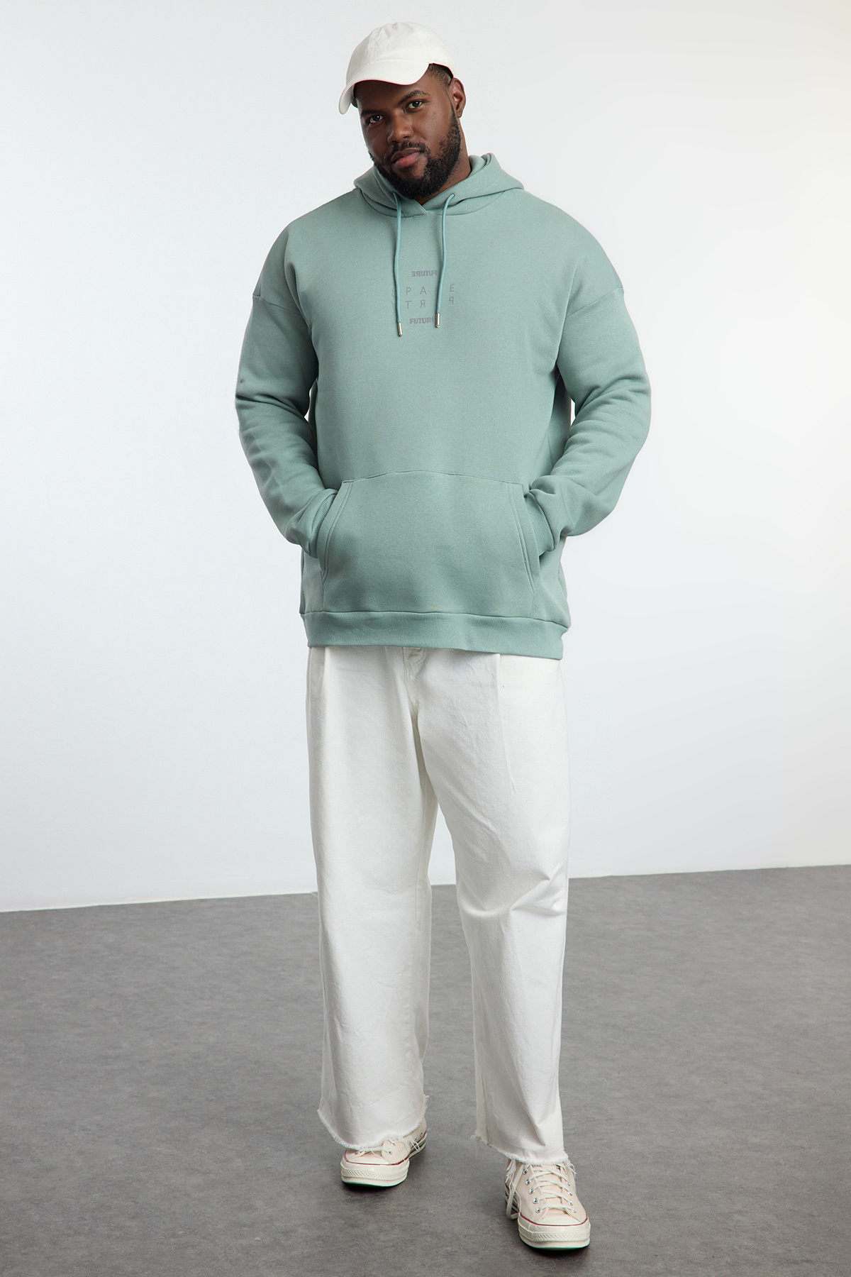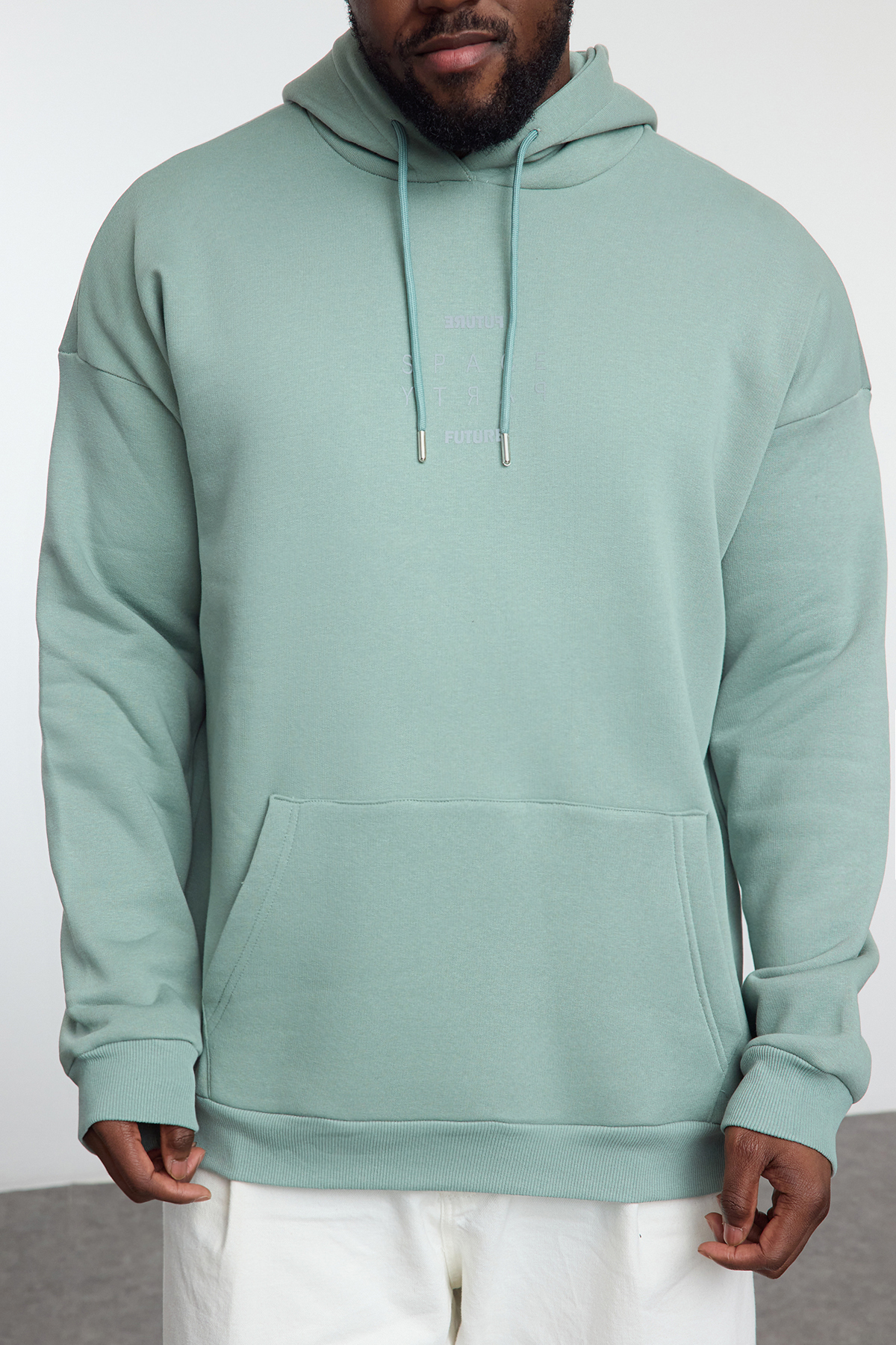 هودی مردانه بزرگ سایز پشمی قطبی نعناع TRENDYOL MAN