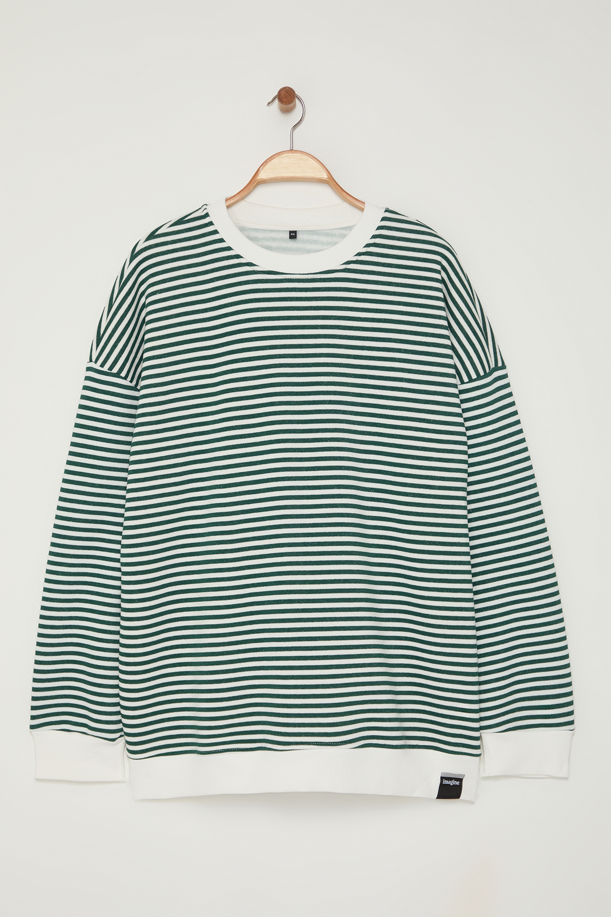 سویشرت مردانه پشمی راه راه سبز سایز بزرگ TRENDYOL MAN