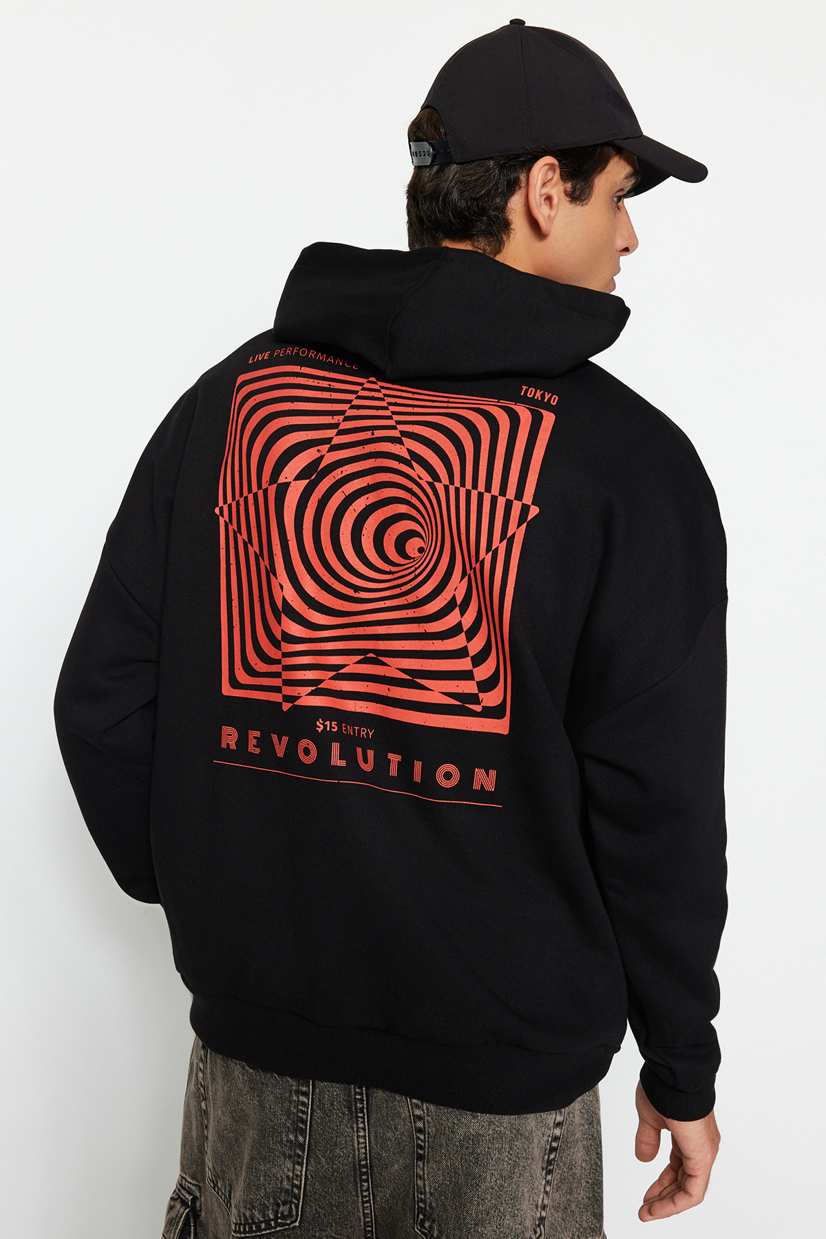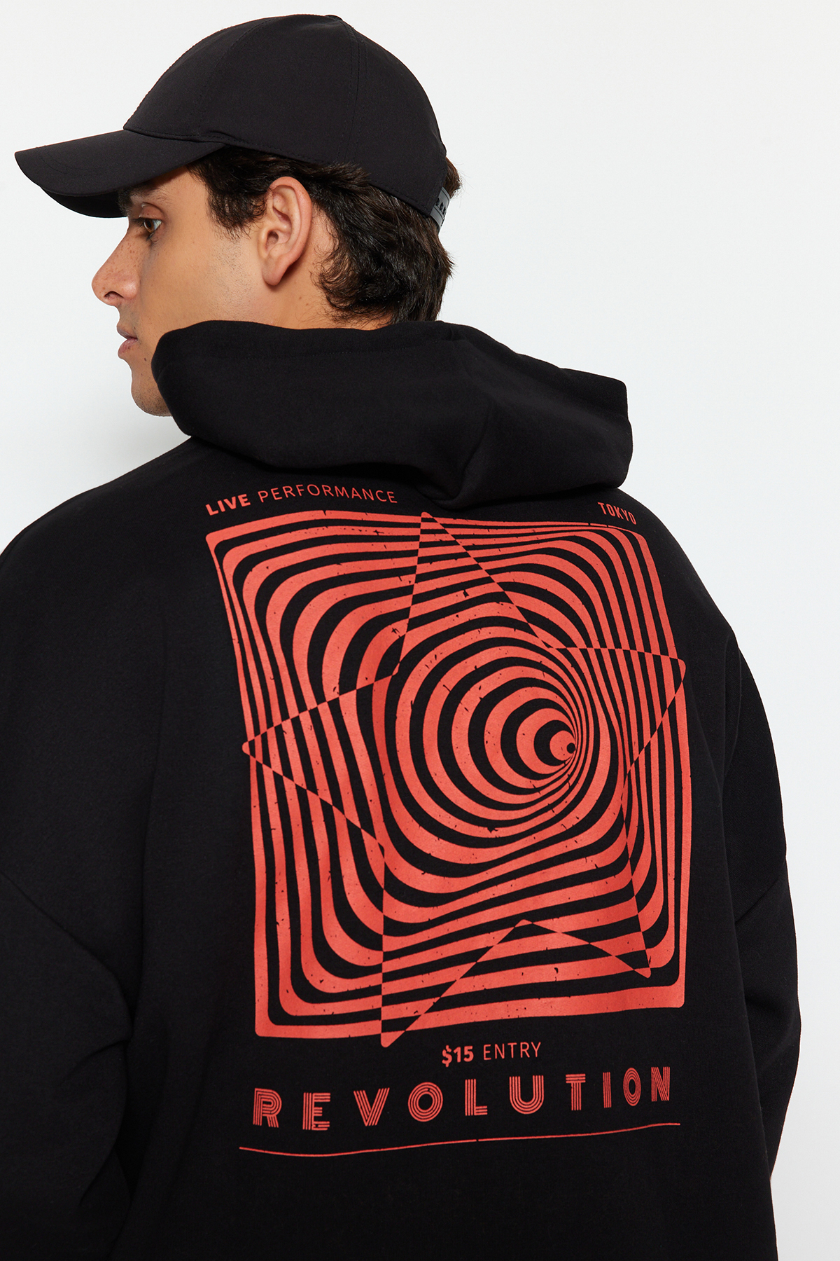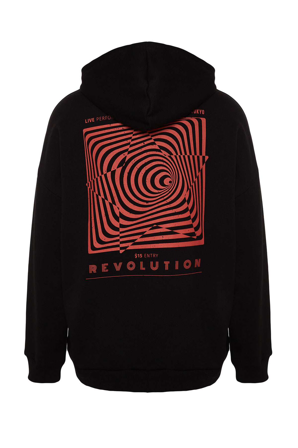 صفحه اصلی\همه سویشرت ها\سویشرت نخی پشمی طرح هزارتو مشکی بزرگ/برش عریض کلاهدار trendyolmilla man