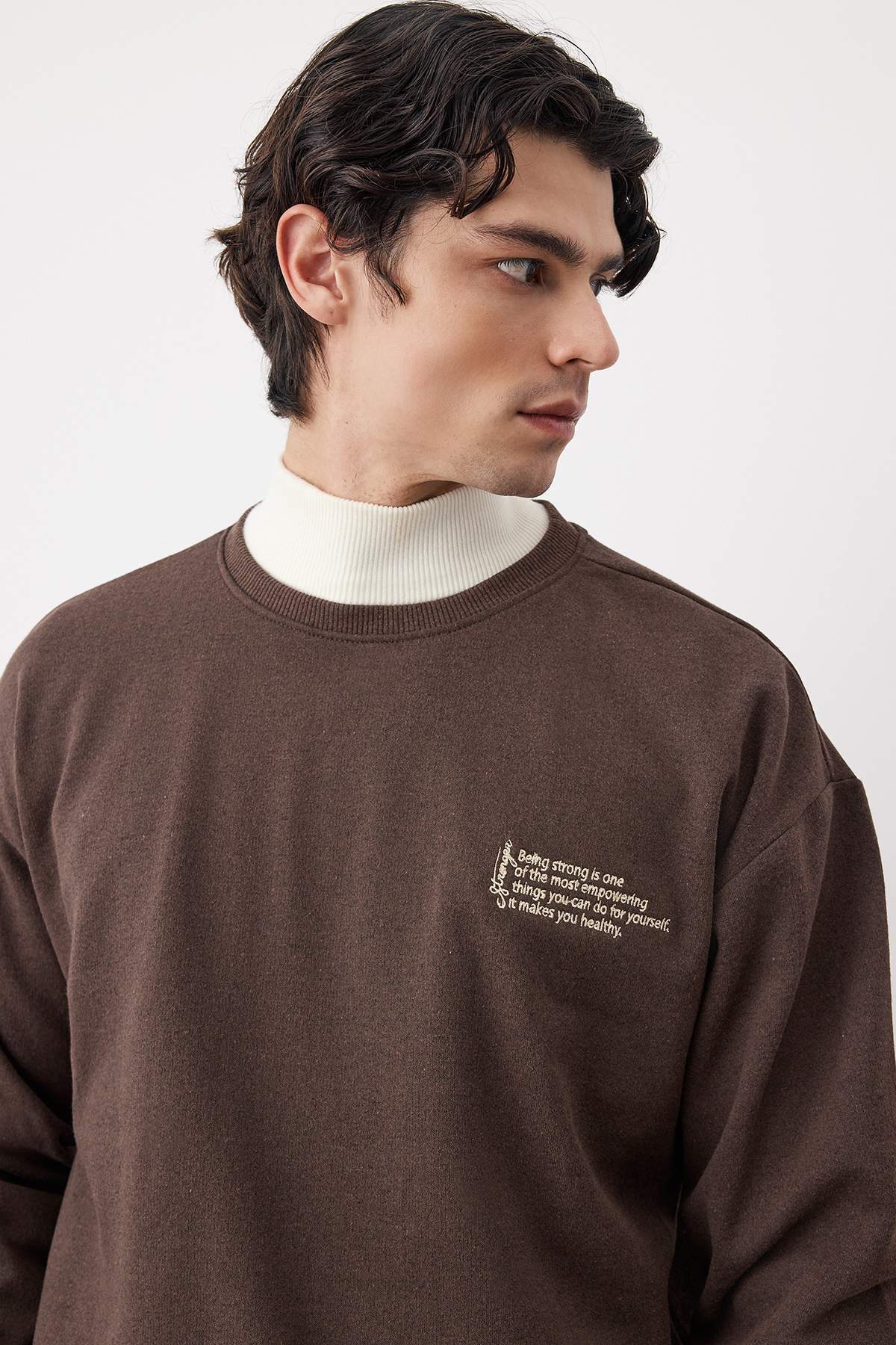 سویشرت مردانه قهوهای اورسایز trendyolmilla man