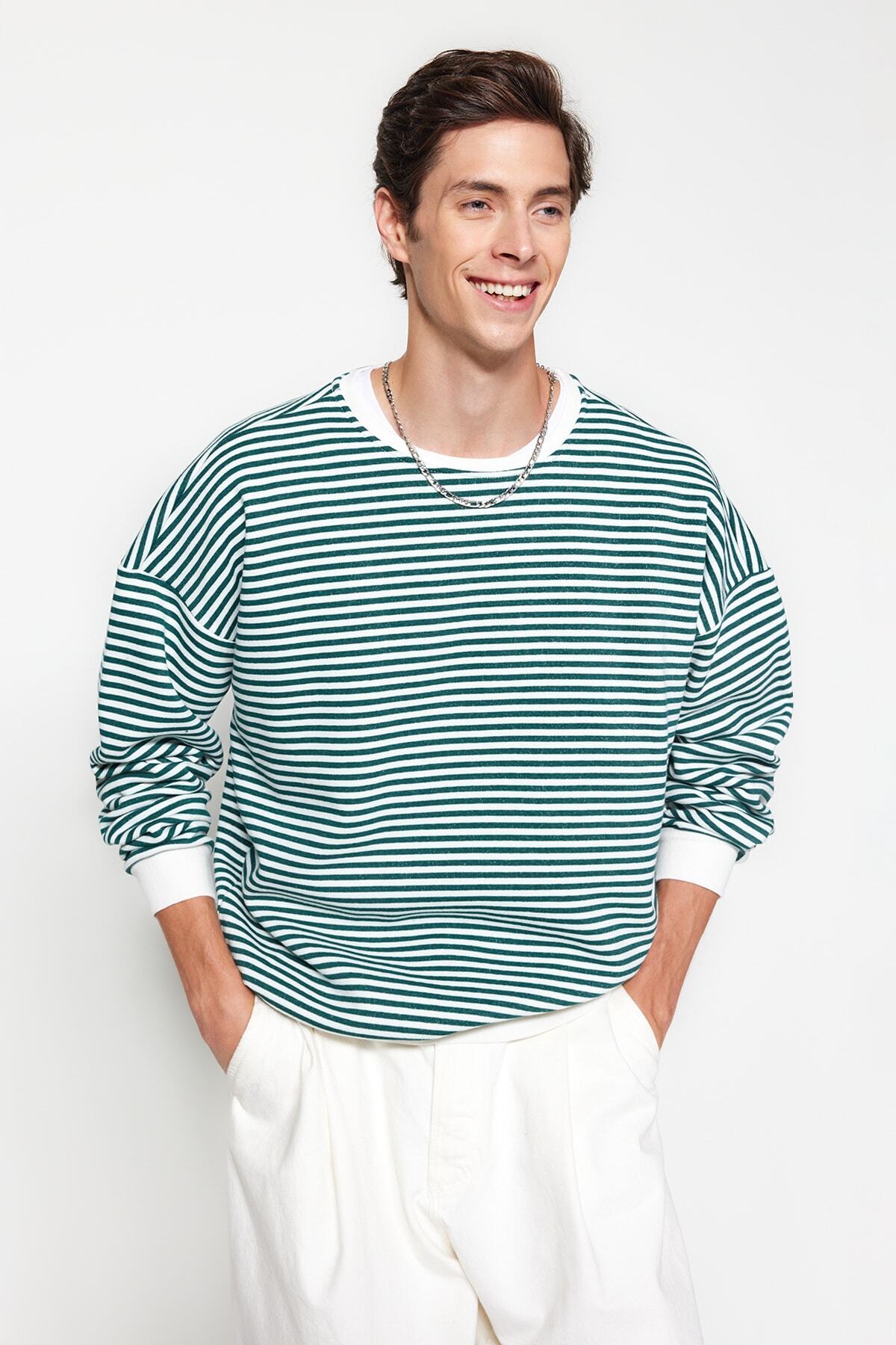 سویشرت مردانه گرم پشمی راه راه سبز اور سایز trendyolmilla man