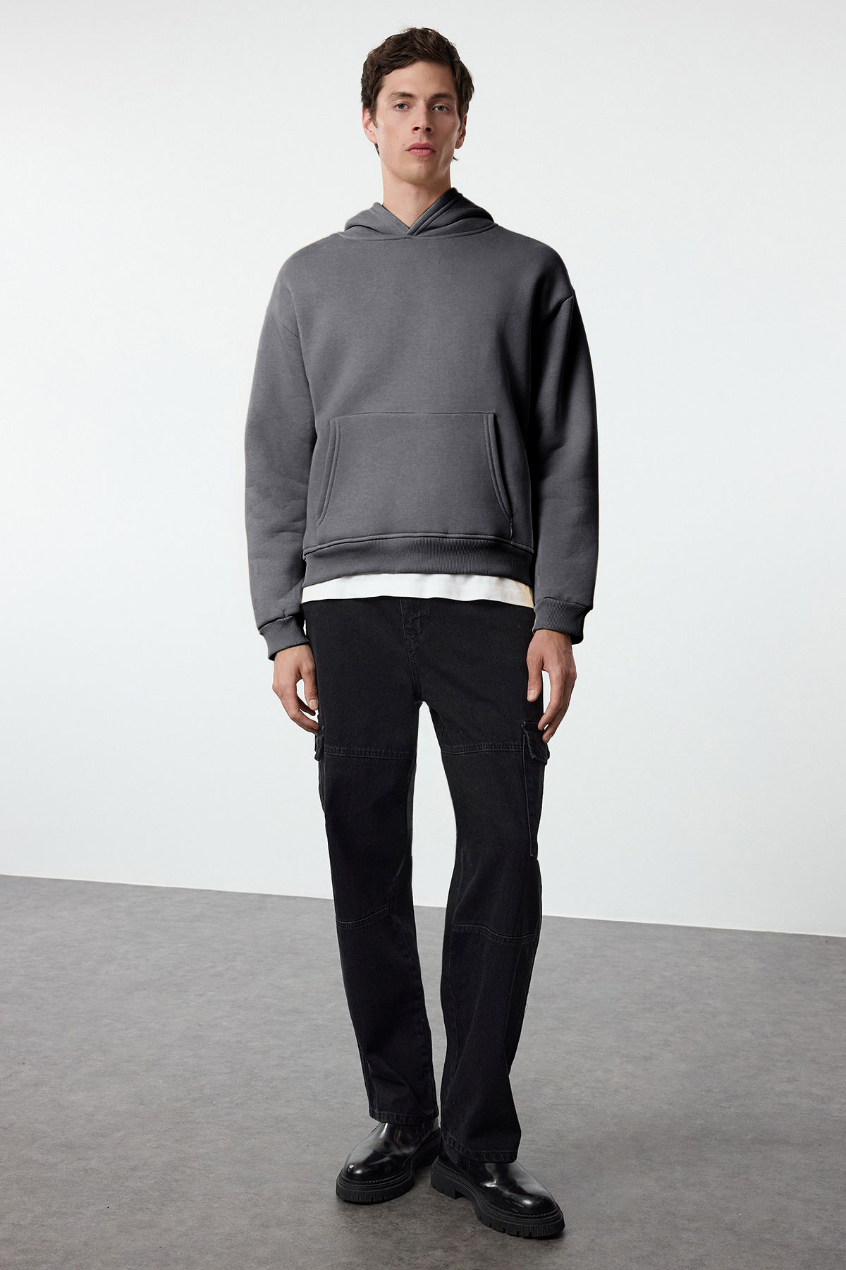 سویشرت مردانه کلاهدار اور سایز ذغالی trendyolmilla man