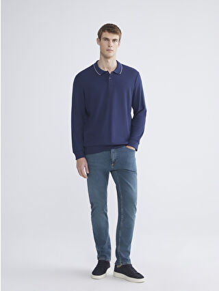 سویشرت مردانه یقه پولو آبی سورمه ای LCW