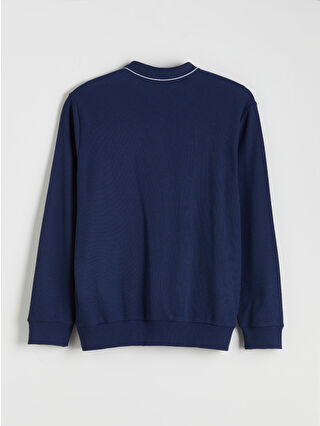 سوئیشرت ساده با یقه زیپ دار ضخیم Defacto آبی تیره