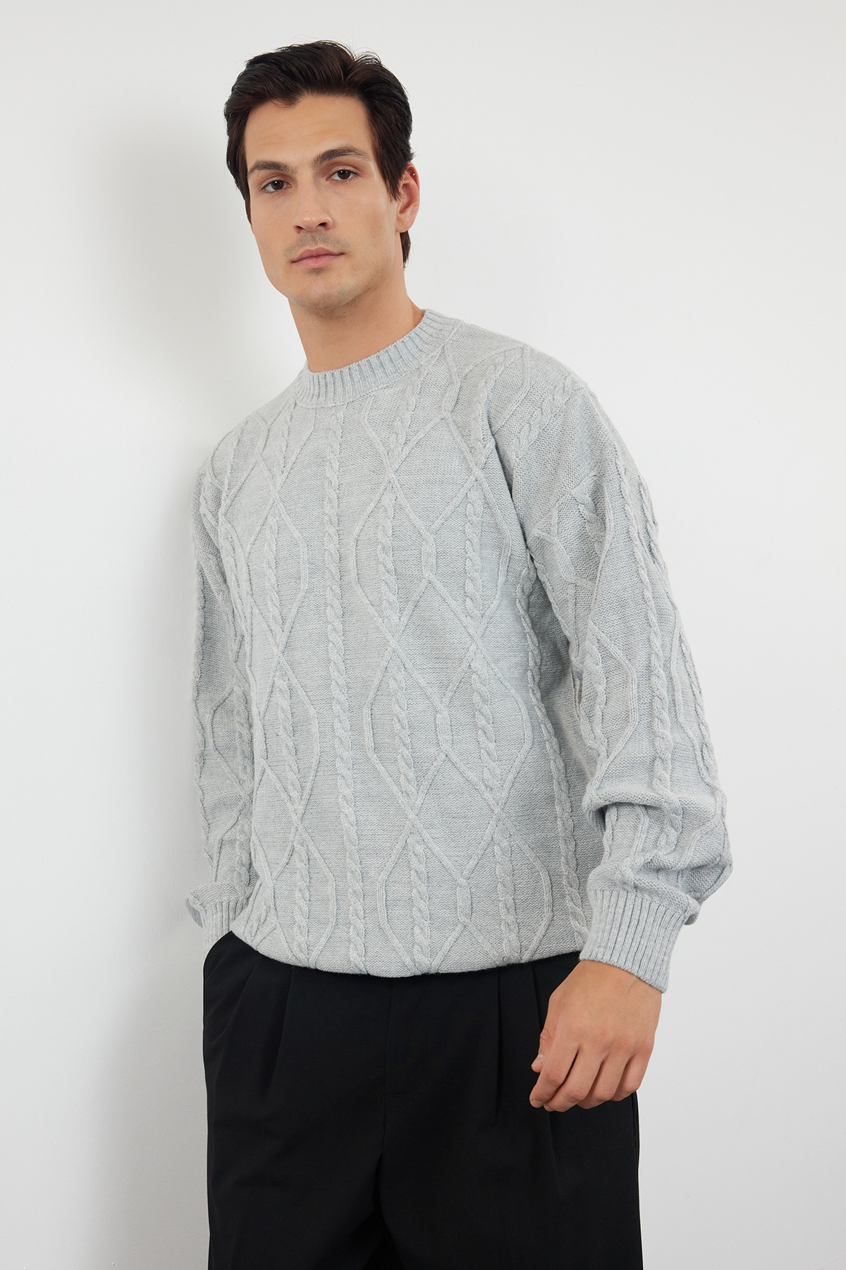 پلیور بافتنی یقه استاندارد فیت Defacto طوسی کمزنگ ملانژ