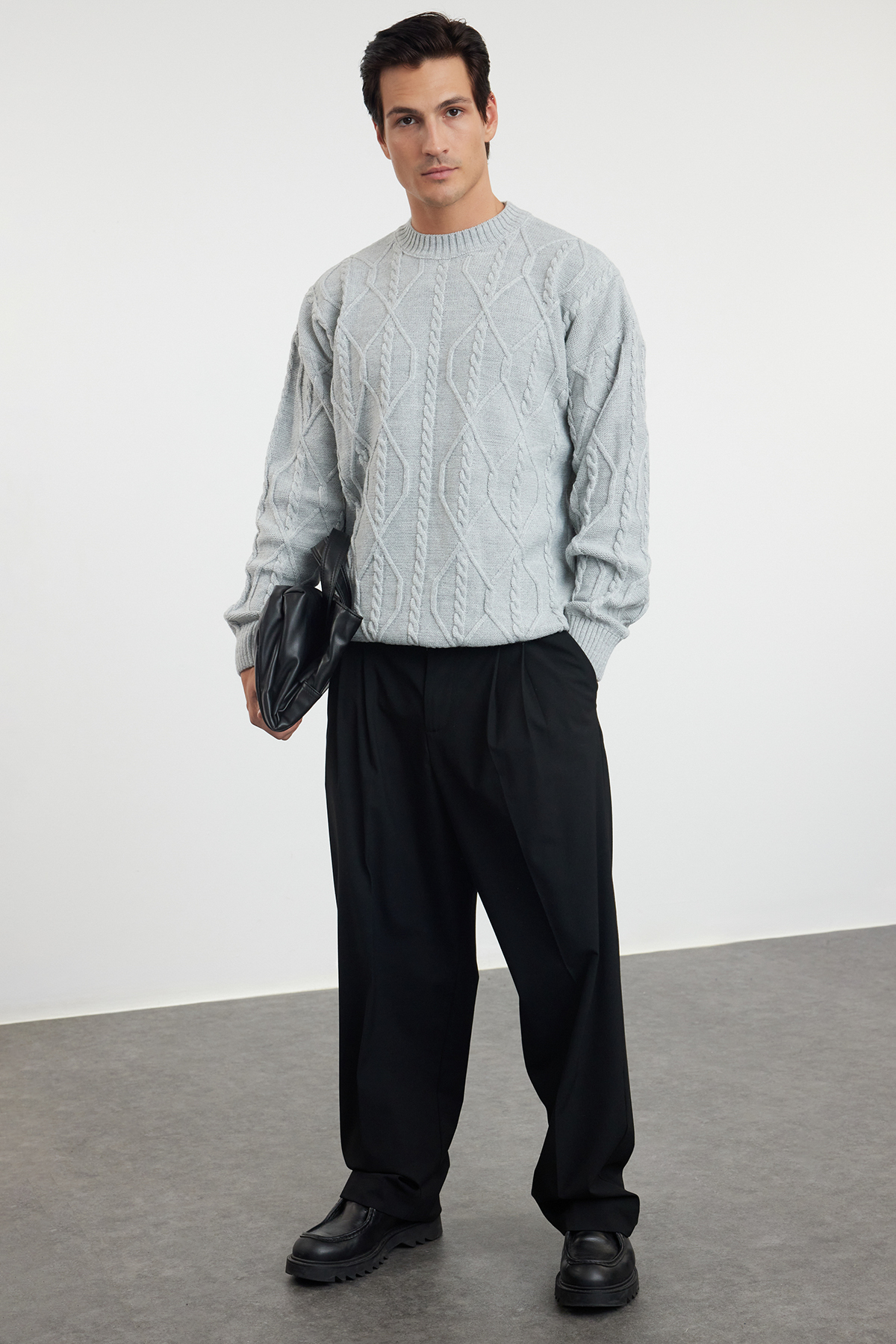 پلیور مردانه بافتنی اورسایز خاکستری TRENDYOL MAN