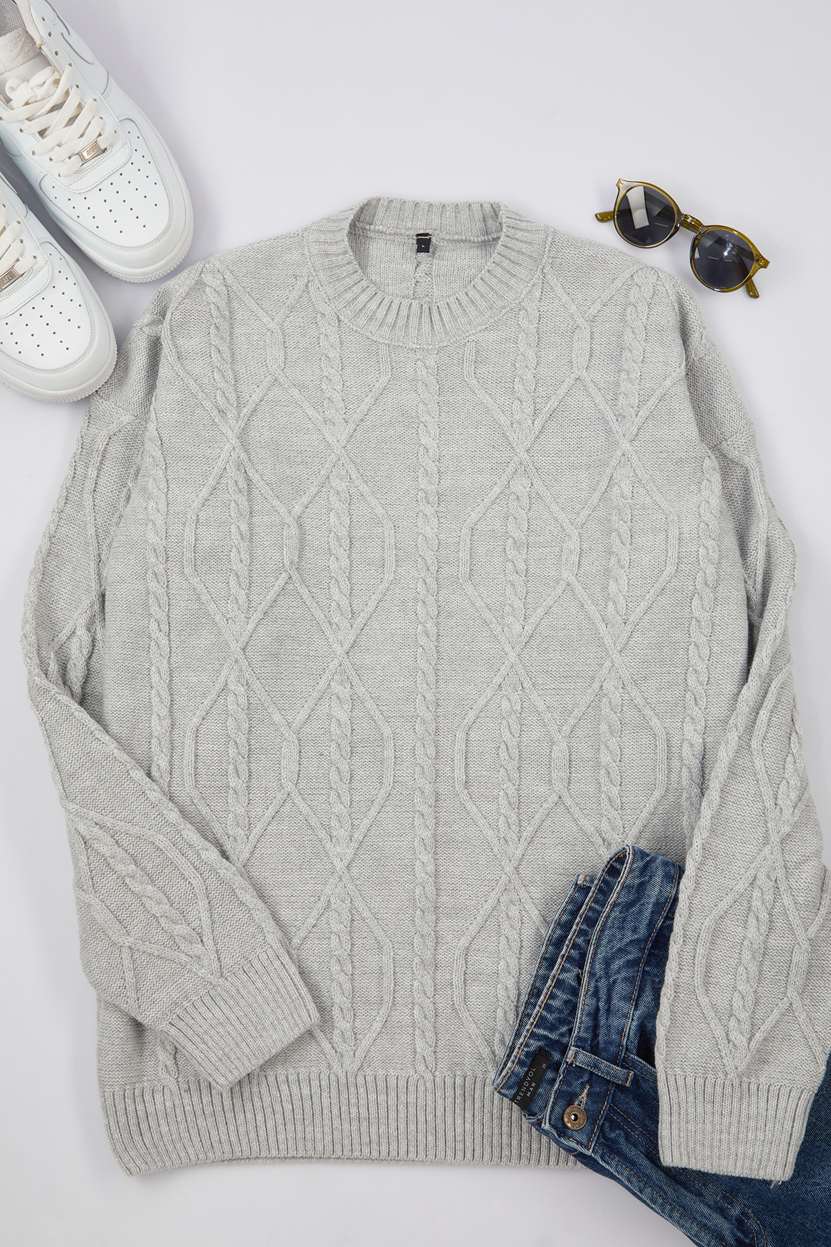 صفحه اصلی\همه پلیور ها\پلیور مردانه بافتنی اورسایز خاکستری TRENDYOL MAN