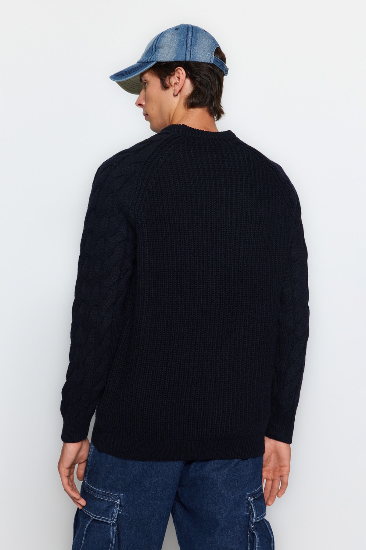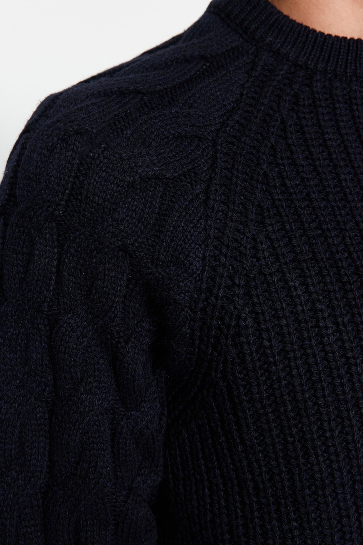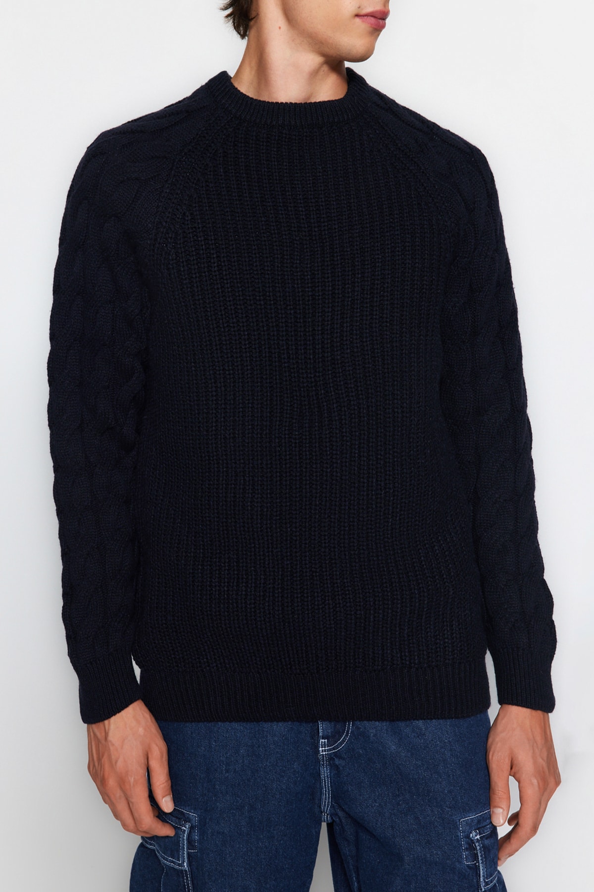 پلیور مردانه بافتنی پشمی یقه گرد سرمه ای trendyolmilla man