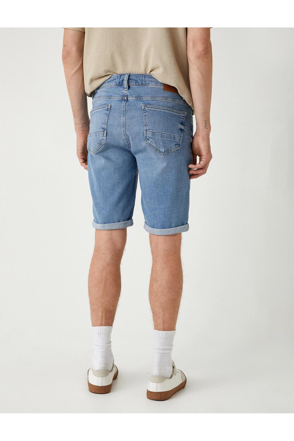 شلوارک جین مردانه اسلیم فیت با جیب و پاچه تا شده Koton