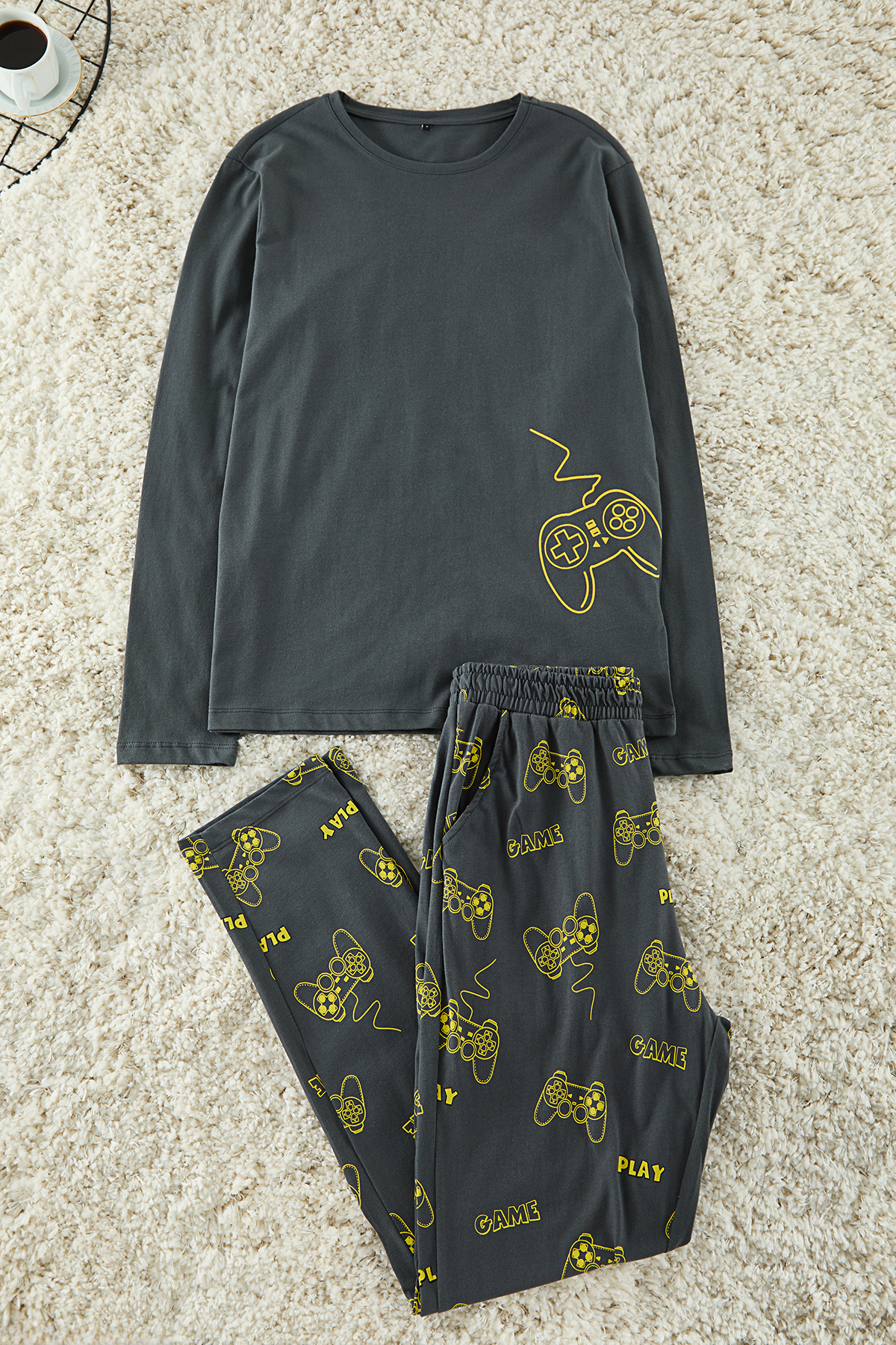لباس خواب مردانه از جنس پشم قطبی Sude HOMEWEAR بژ خاکستری