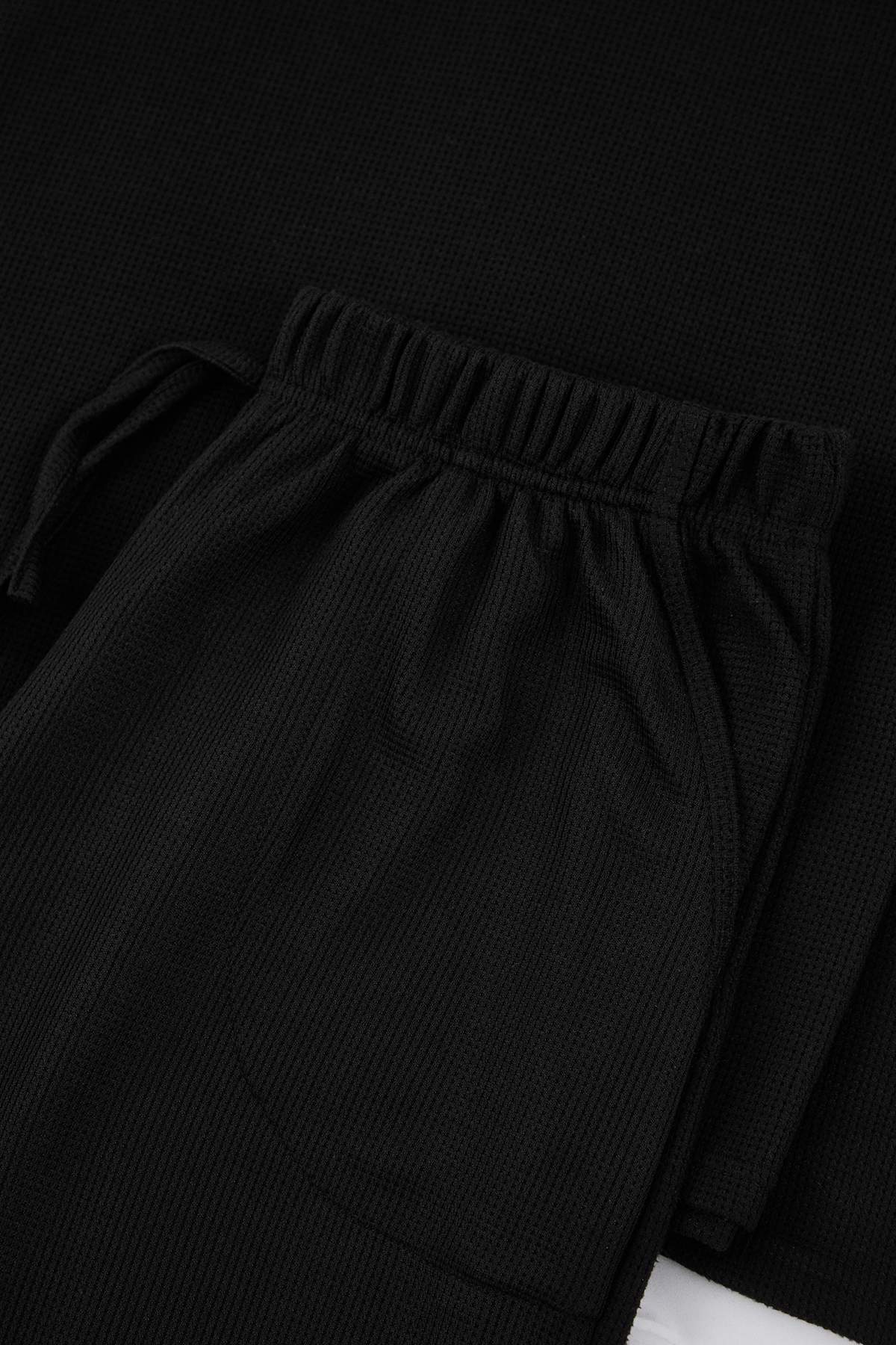ست لباس خواب بافتنی نرم و وفلی مشکی trendyolmilla man