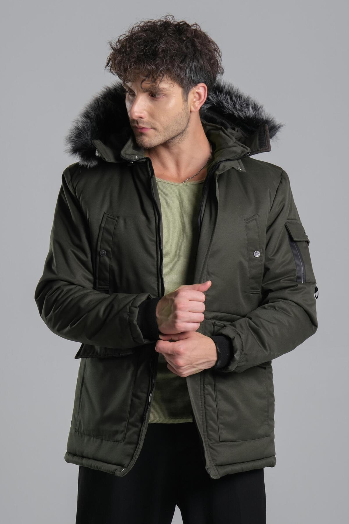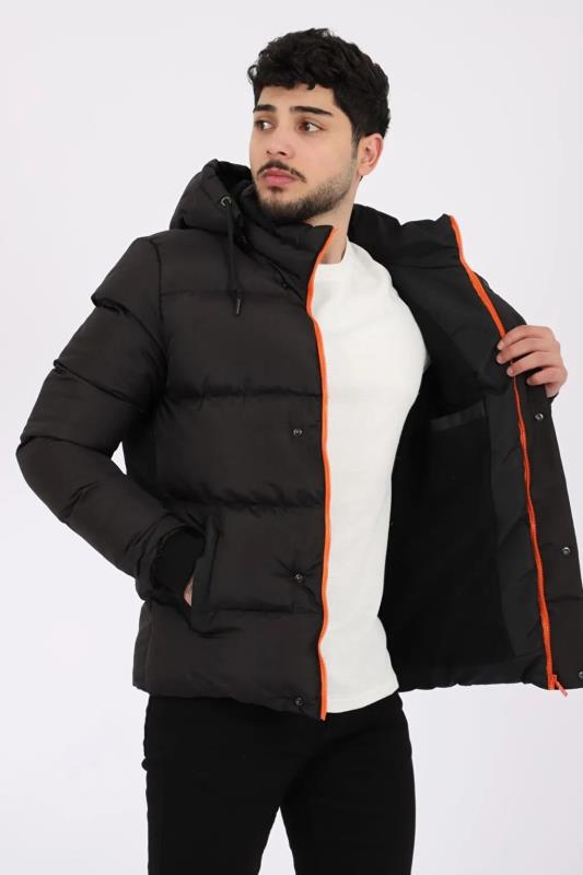 کاپشن مردانه پف دار کلاه دار با آستر خز stilkombin مشکی