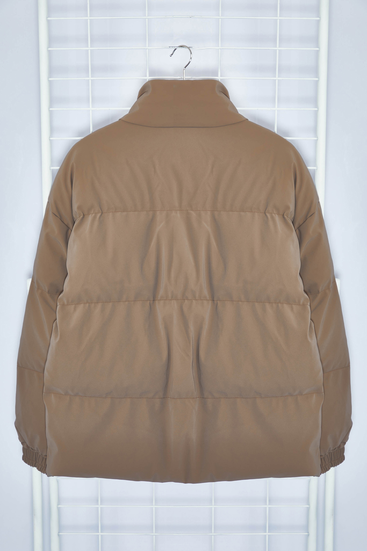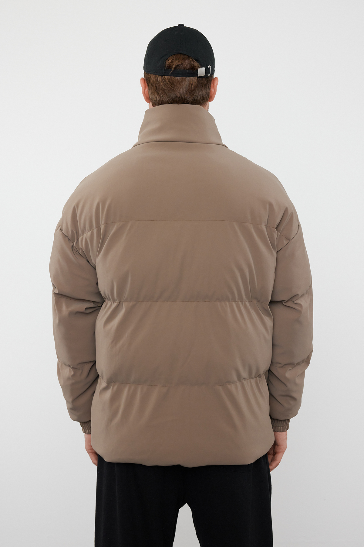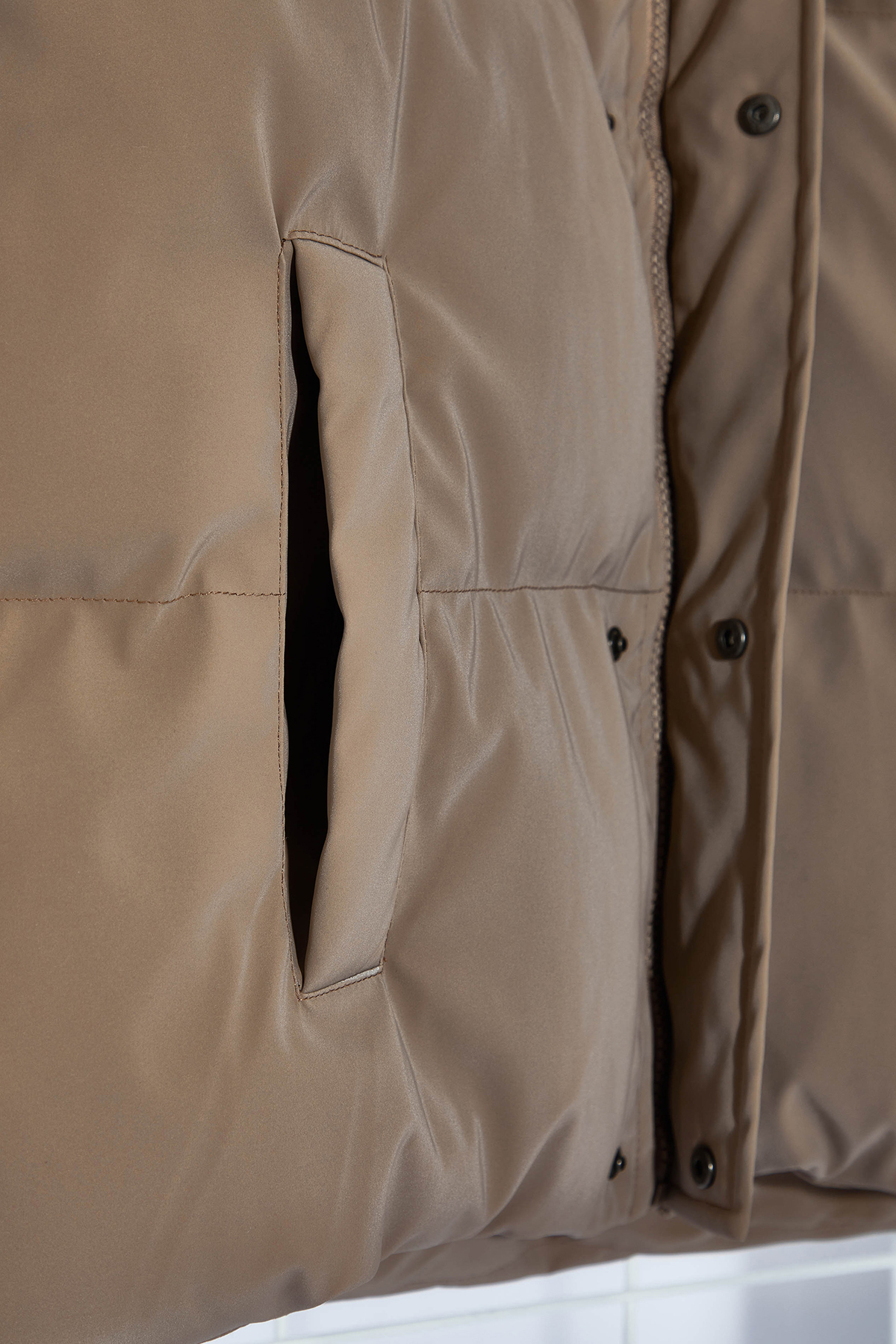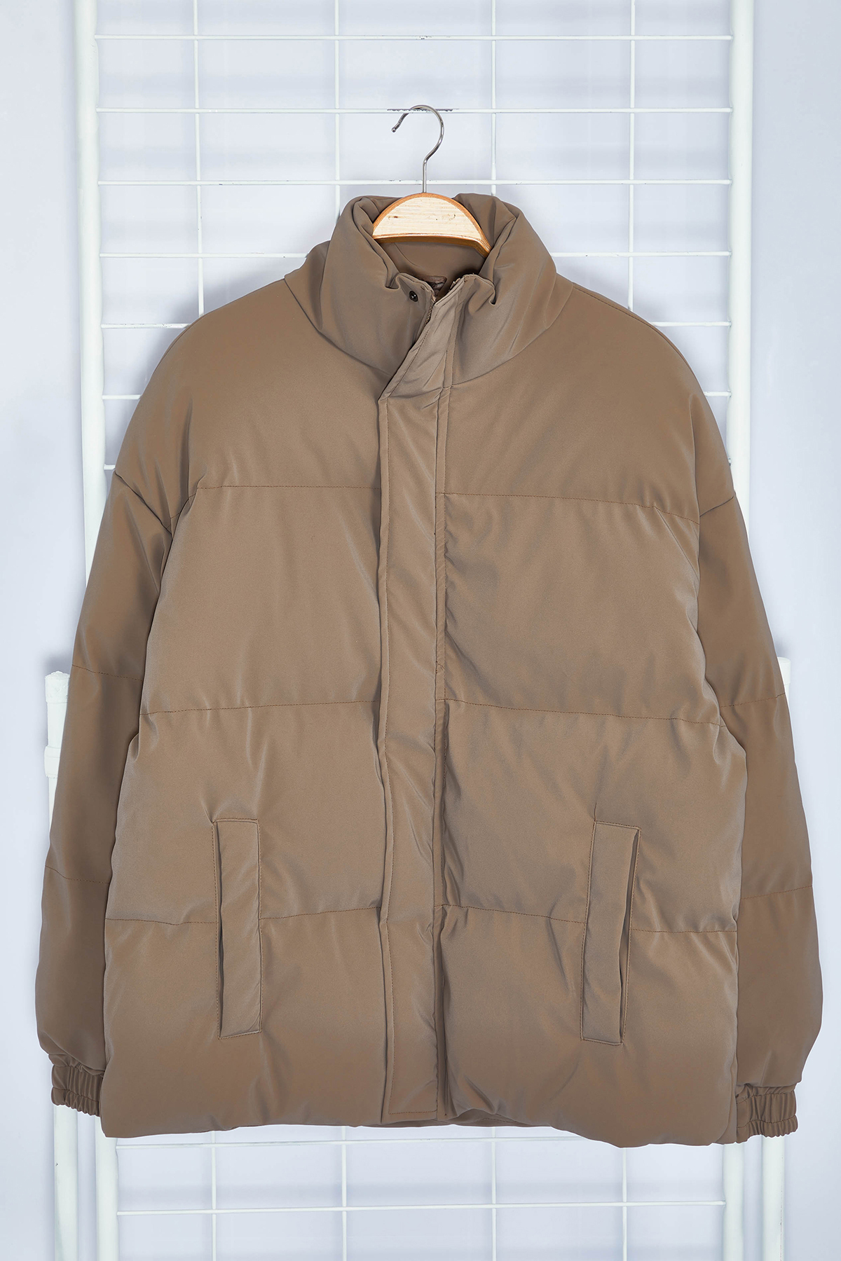 کاپشن مردانه پف دار زمستانی یقه استند اور سایز قهوه ای روشن TRENDYOL MAN
