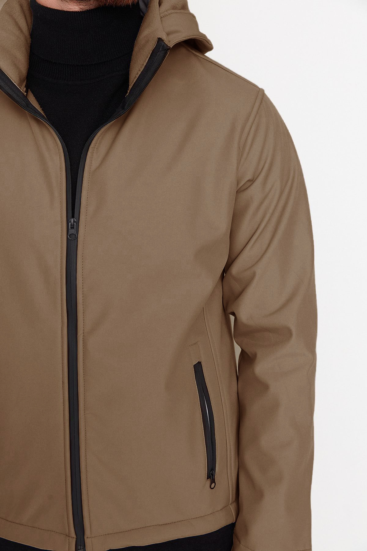 کاپشن مردانه زیپ دار و قابل جدا شدن کلاه بژ TRENDYOL MAN