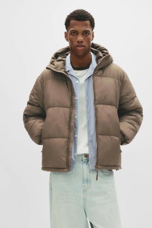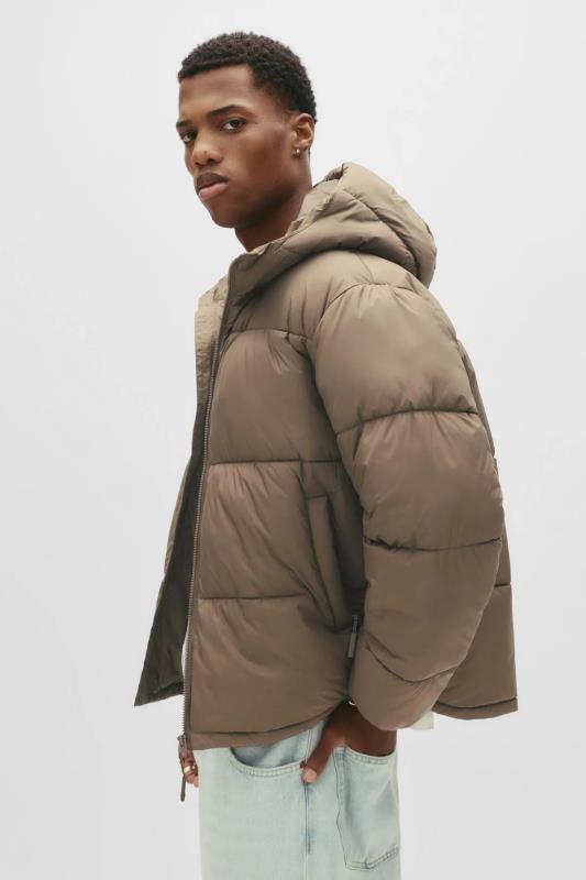 صفحه اصلی\همه کاپشن ها\کاپشن مردانه پفی کلاهدار Pull & Bear کاراملی