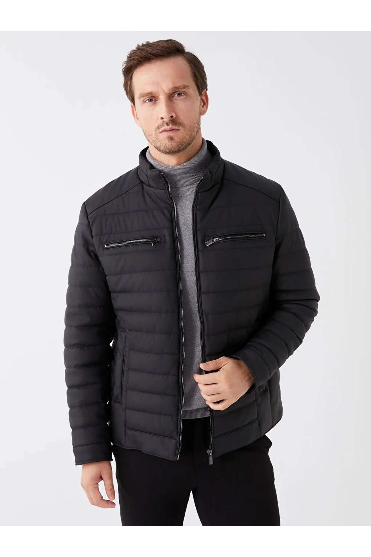 کاپشن بادی مردانه یقه ایستاده سایز استاندارد طوسی مشکی XSIDE