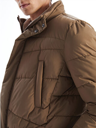 کاپشن مردانه زمستانی دو رنگ اسلیم فیت خاکی TRENDYOL MAN