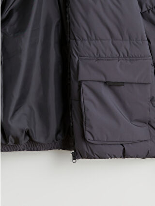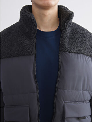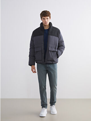 کاپشن بادی مردانه یقه ایستاده سایز استاندارد طوسی مشکی XSIDE