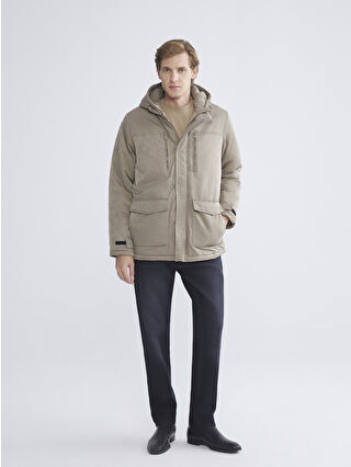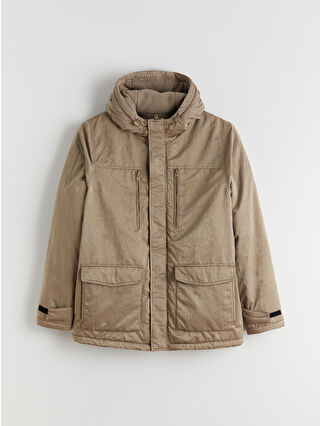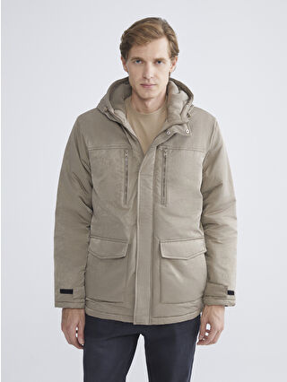 پالتوی مردانه کلاهدار سایز استاندارد بژ LCW