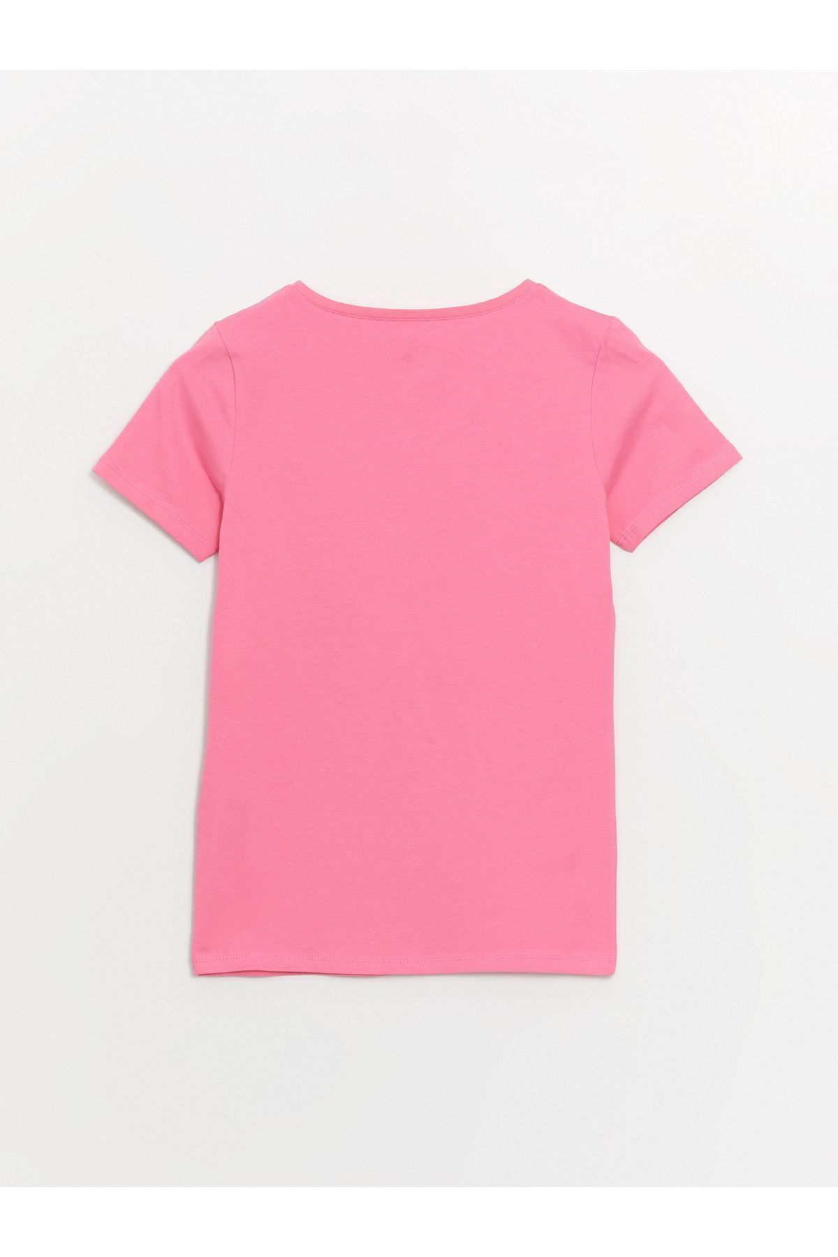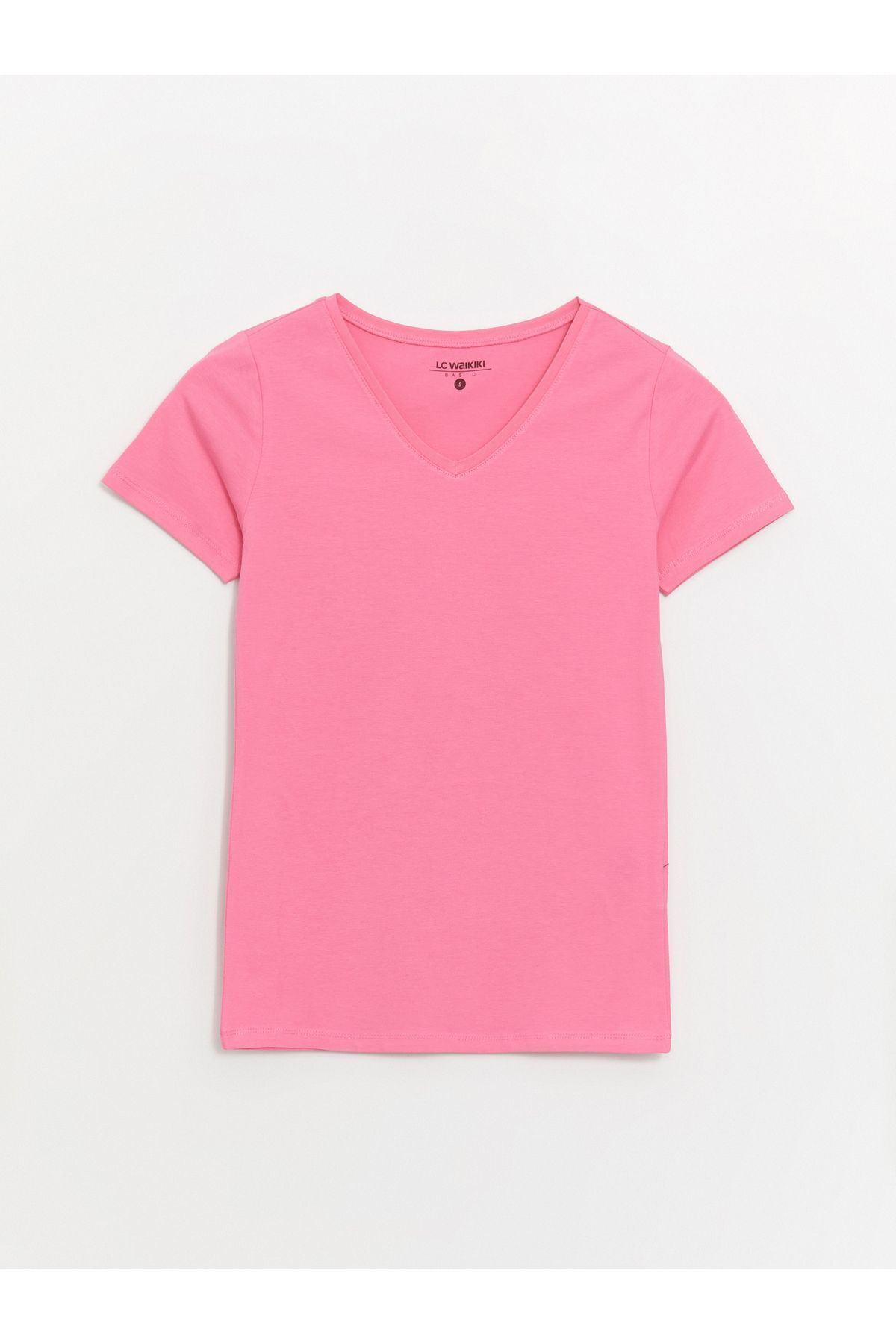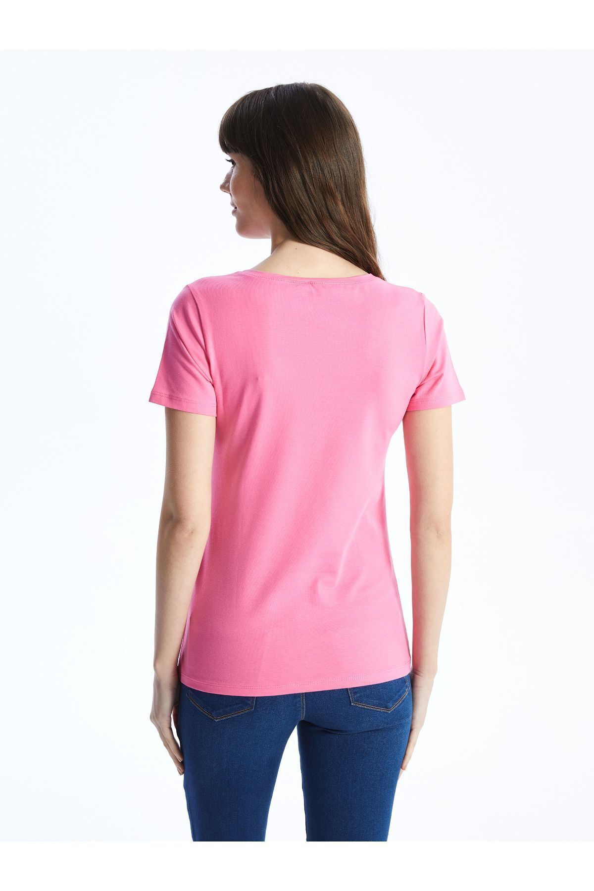 تیشرت زنانه یقه هفت آستین کوتاه صورتی LC Waikiki