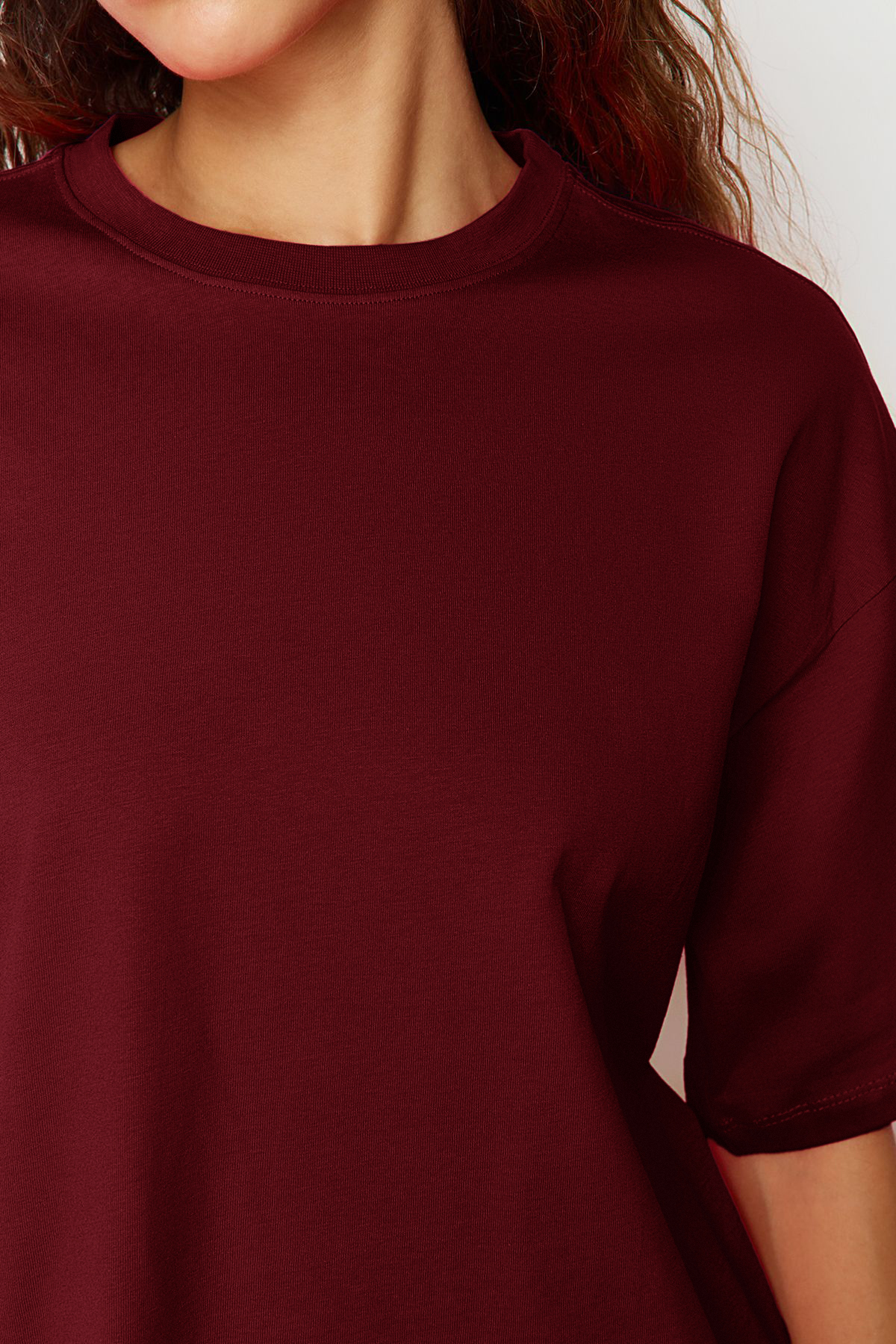 تیشرت زنانه 100% پنبهای با برش عریض/کلارت قرمز TRENDYOLMILLA