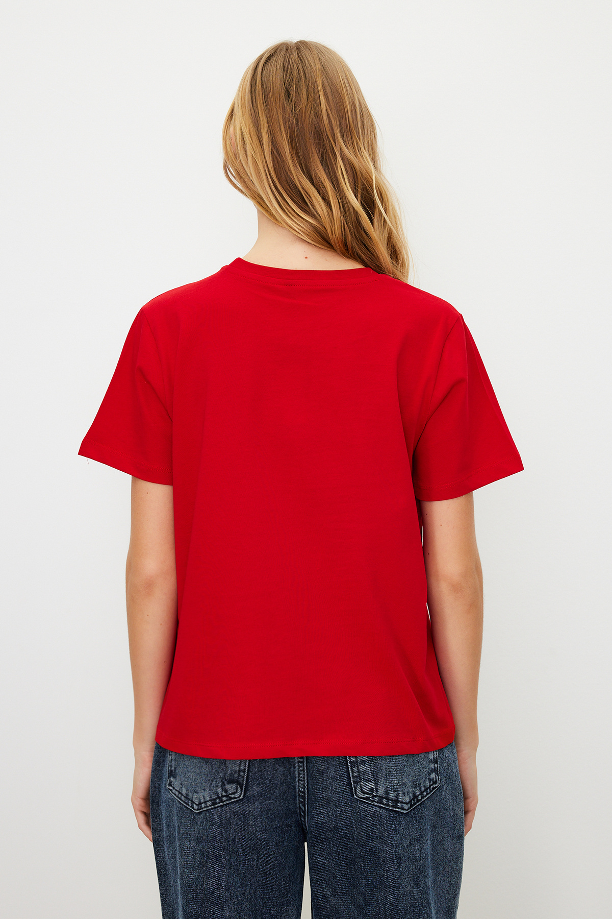 تیشرت زنانه یقه گرد بیسیک 100% نخی قرمز TRENDYOLMILLA