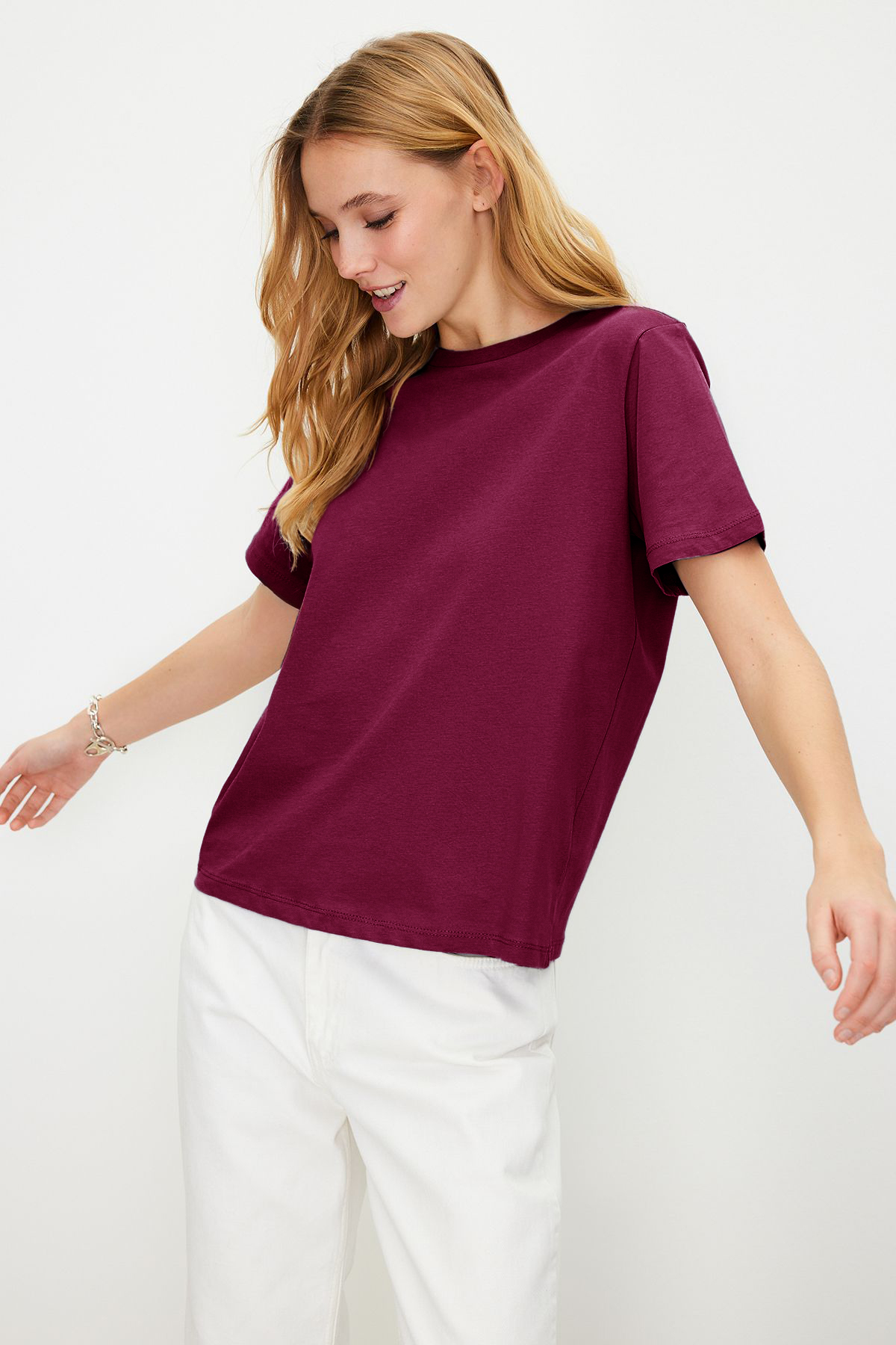 تیشرت زنانه گیلاسی تیره 100% پنبه TRENDYOLMILLA