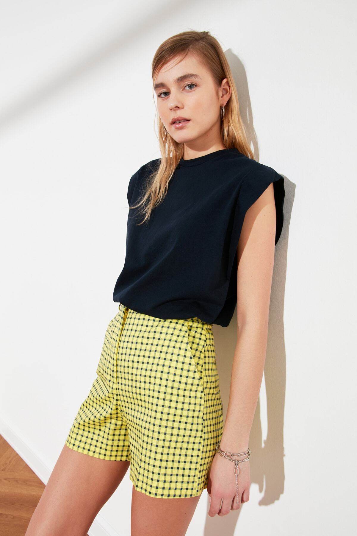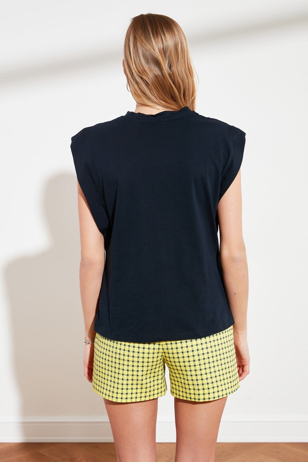 تیشرت زنانه یقه گرد 100% پنبه ای آبی دریایی TRENDYOLMILLA