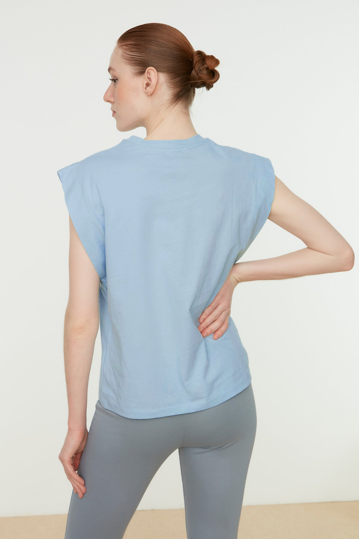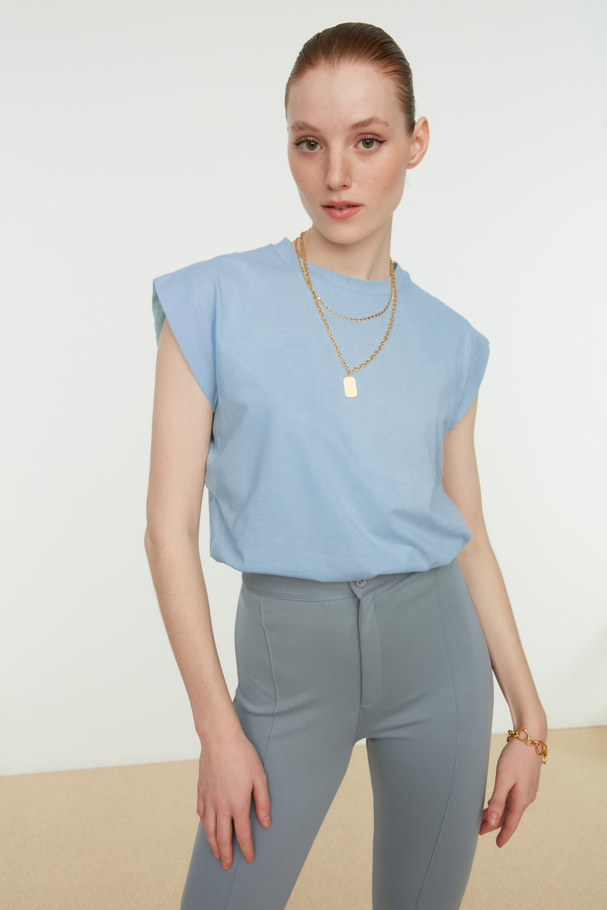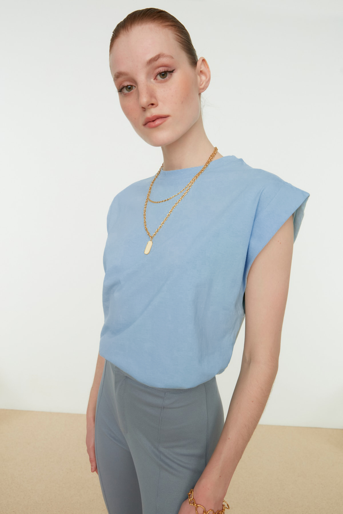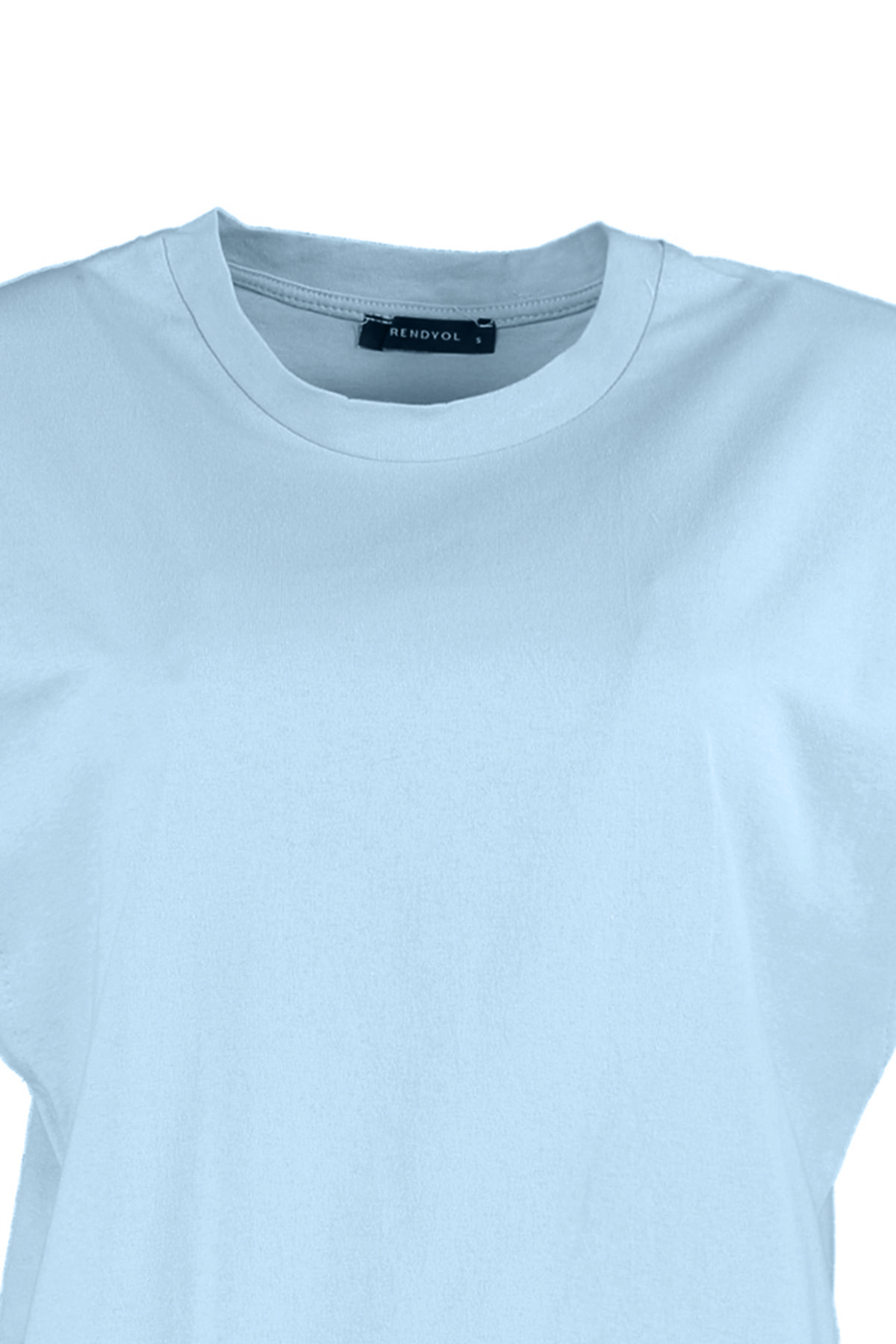 تیشرت زنانه یقه گرد 100% پنبه ای آبی TRENDYOLMILLA