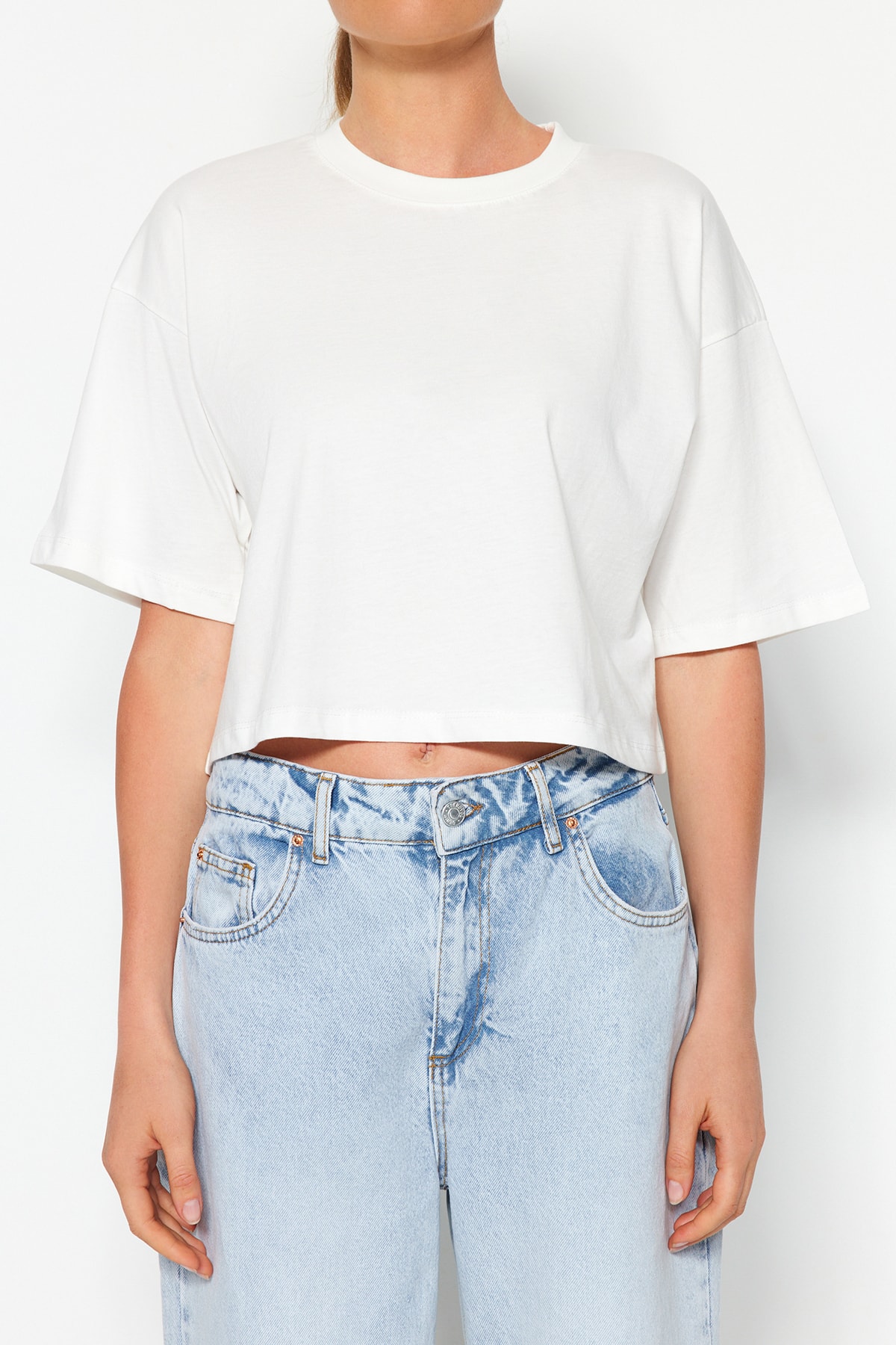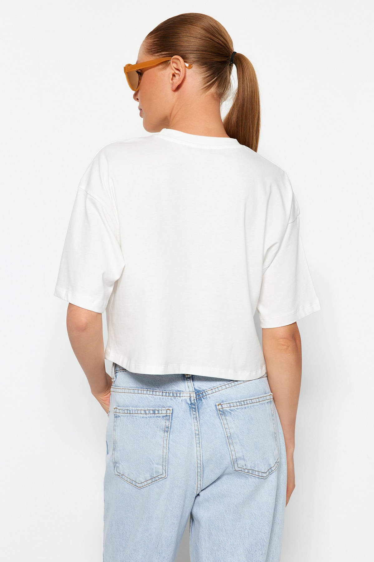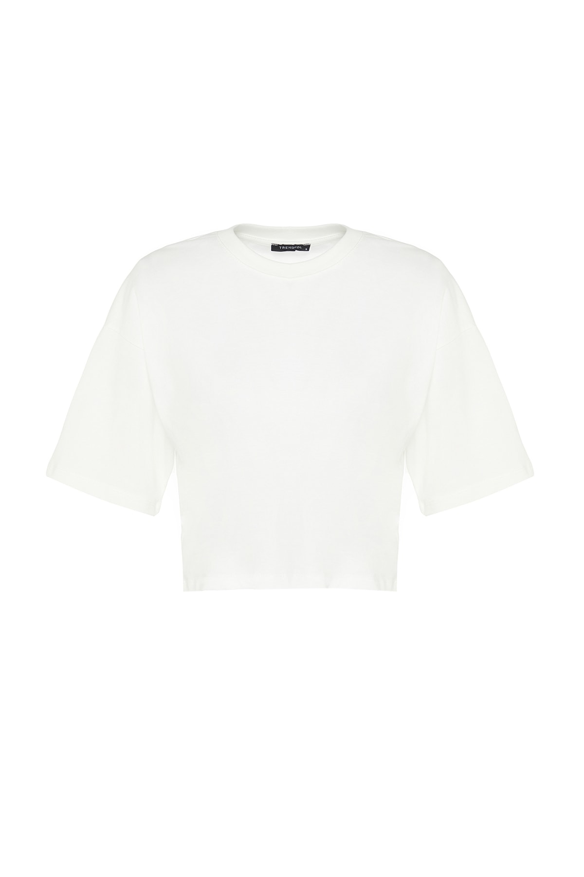 تیشرت زنانه 100% پنبه ای با فرم ریلکس سفید TRENDYOLMILLA